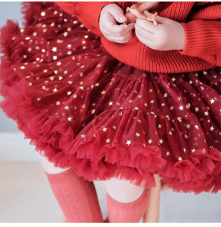 Юбка-пачка с принтом звезд для девочек, новый стиль класса А для возраста 1-8 лет, плиссированная юбка, стильная пышная юбка, платье принцессы на первый день рождения.