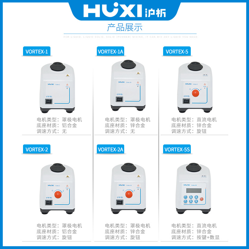 Vortex-3000 [Специальное предложение — фиксированная скорость 3000 об/мин]; Vortex-M; Vortex-1 (фиксированная скорость 2800 об/мин); Vortex-1A (основа из цинкового сплава работает более стабильно); Воркс-2 (регулировка скорости 0-2800об/мин); Vortex-2A (основа из цинкового сплава работает более стабильно); Работа датчика Vortex-5; Индукционная работа Vortex-5S (цифровой дисплей времени); Универсальный диск; Адаптер (12 отверстий 1,5/2 мл); Адаптер (8 отверстий 5 мл); Адаптер (8 отверстий 10/15 мл); Адаптер (4 отверстия 50 мл); Адаптер (24 отверстия по 0,5 мл); Адаптер (48 отверстий по 0,2 мл); Плоская прокладка; Навинчивающаяся стандартная головка