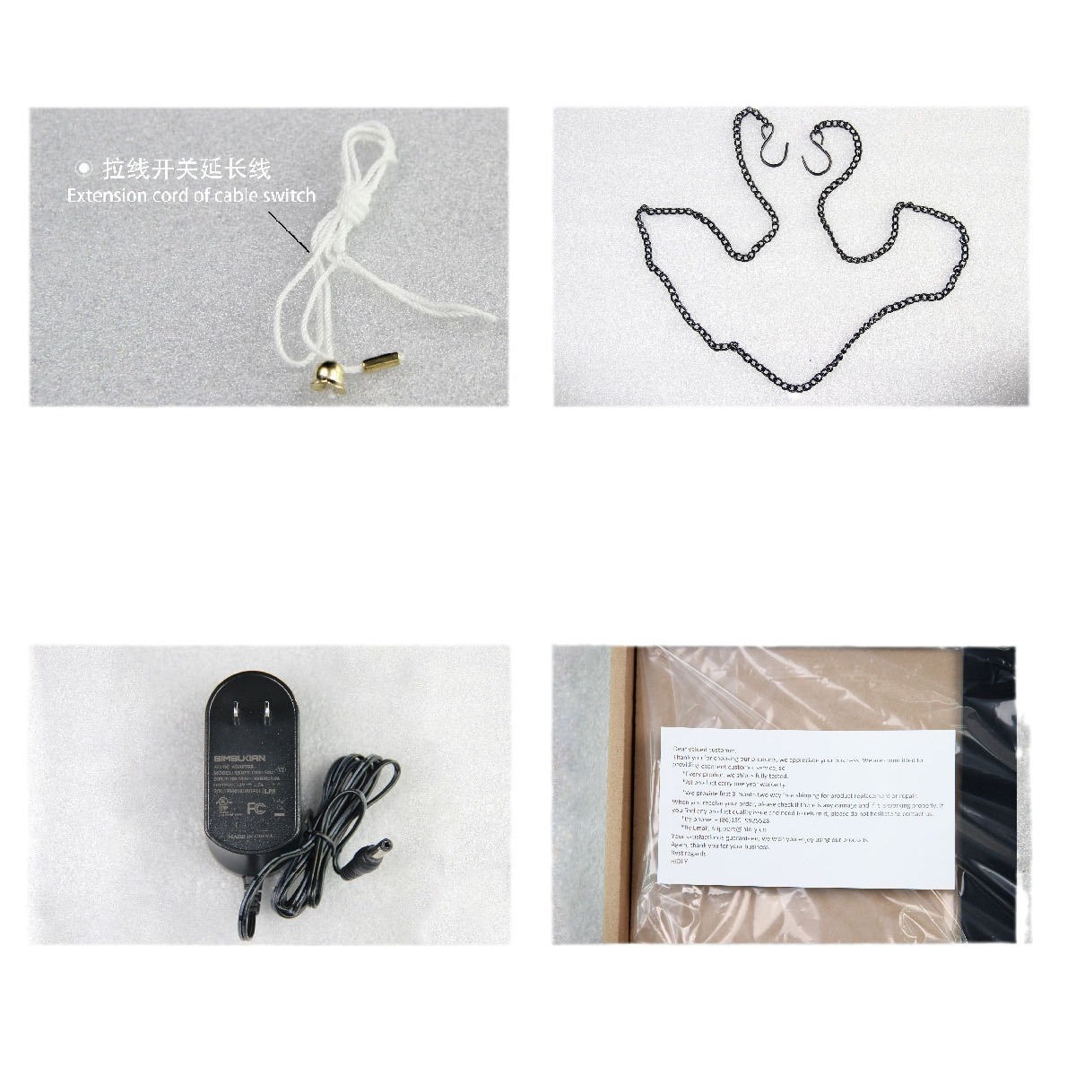 11. 配件: 电源适配器 ,链条,棉线