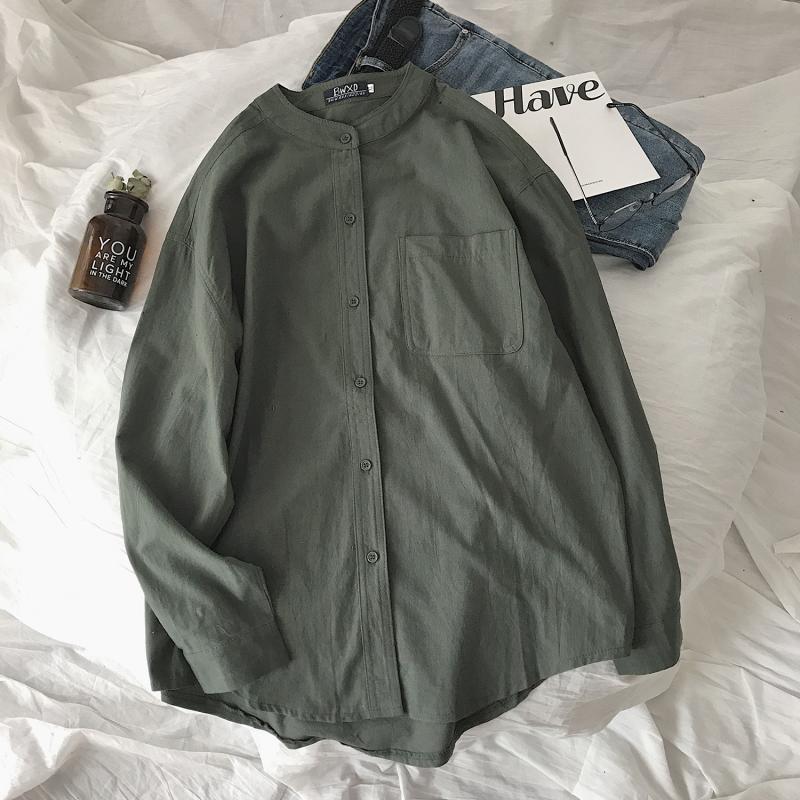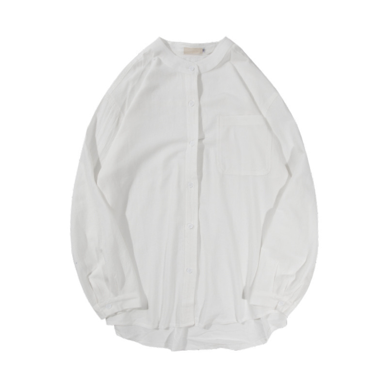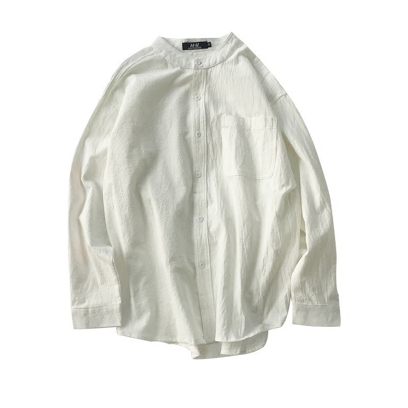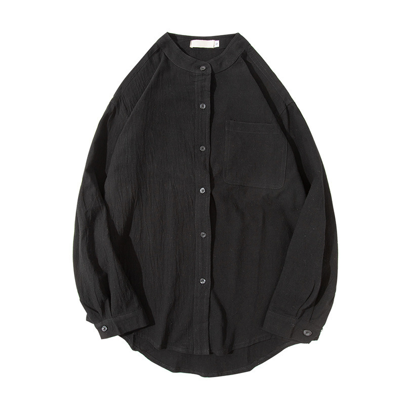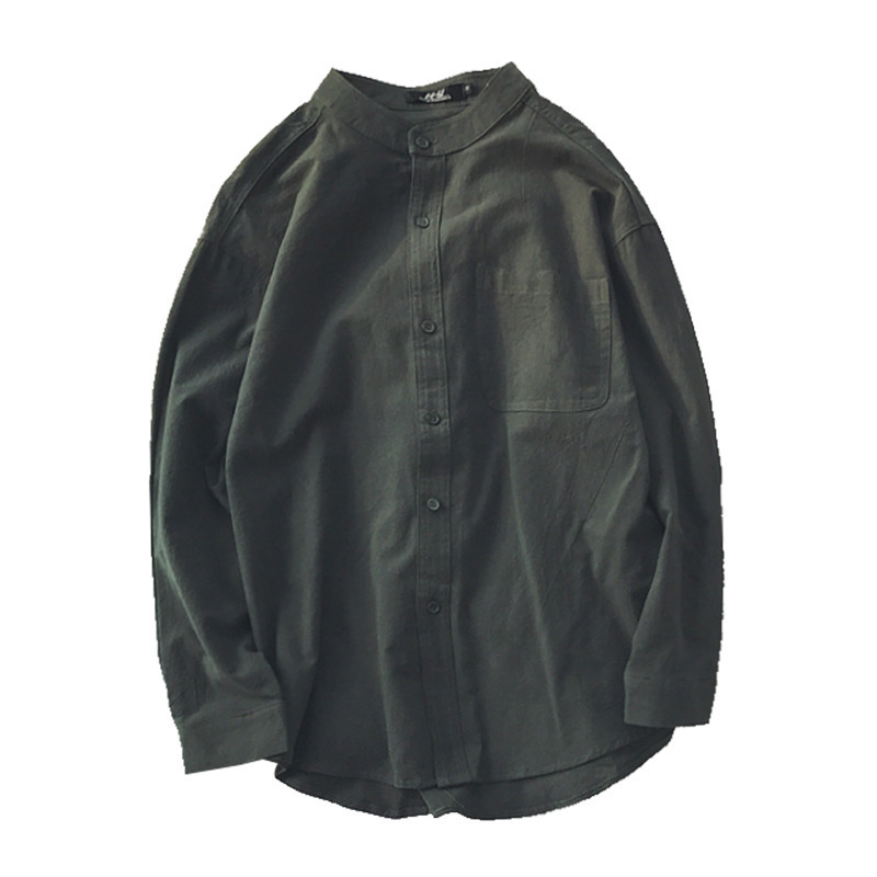 Трансграничная весенне-осенняя рубашка 2024 года в японском гонконгском стиле, однотонная молодежная рубашка с воротником-стойкой и длинными рукавами, модная мужская повседневная рубашка в корейском стиле