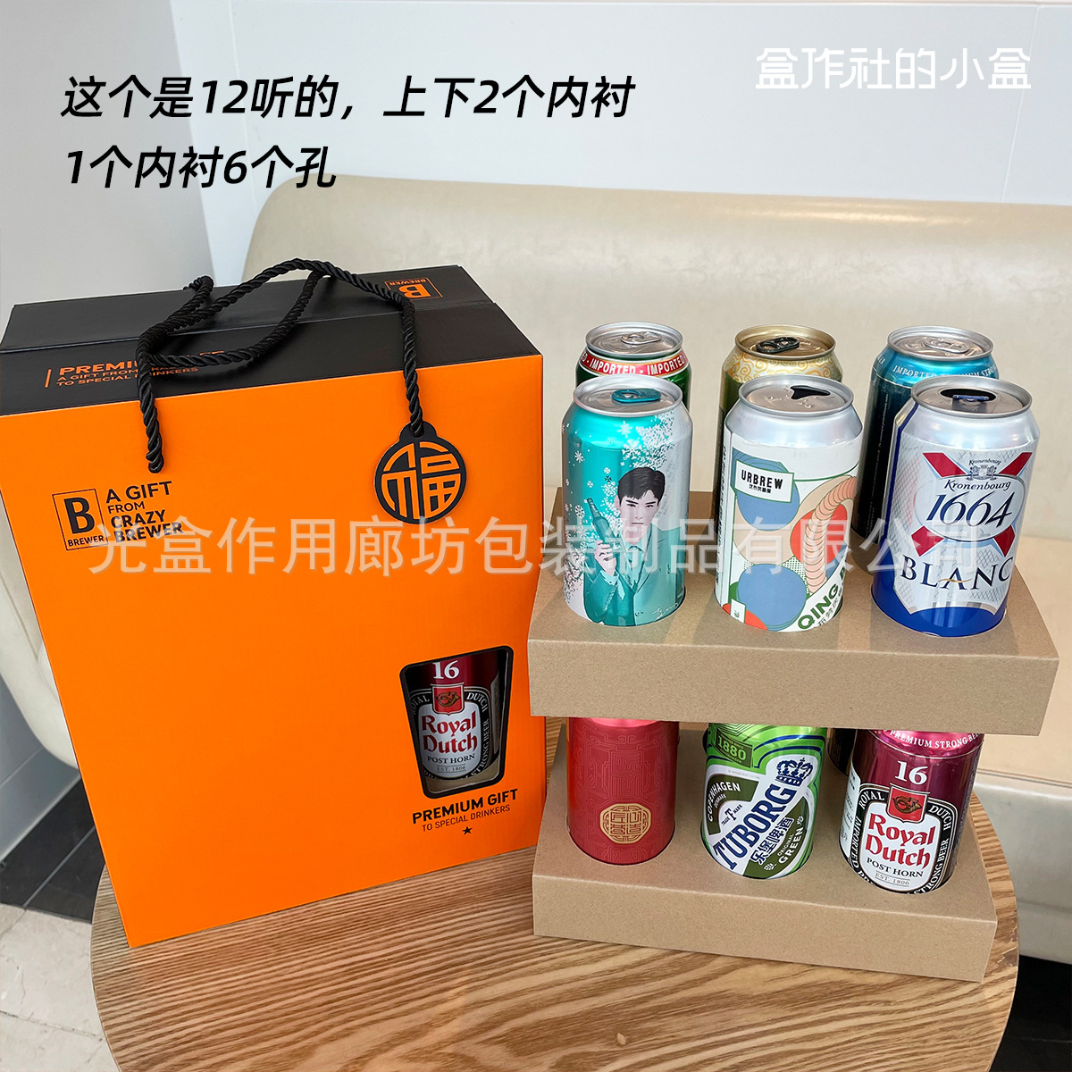 В наличии: картонная упаковка для пива на 12 банок по 500 мл, упаковка для крафтового пива на 10 банок с отрывной крышкой, подарочная коробка на 6 бутылок по 750 мл.