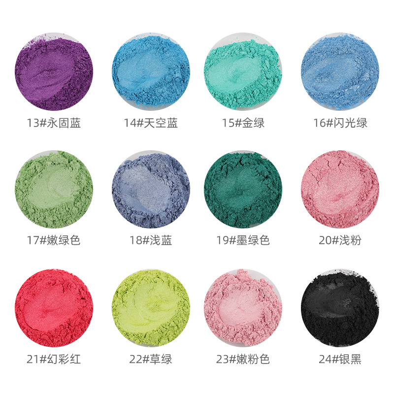 我们是源头工厂针对跨境电商需要彩色珠光粉云母粉进行分装定制包装规格可以5g,10g 20g 50g规格颜色可以12色 18色 24色 36色 48色所有颜色经过严格筛选适合手工肥皂;树指工艺品,蜡烛;水晶泥史莱姆、水晶滴胶等,效果很好看哦!