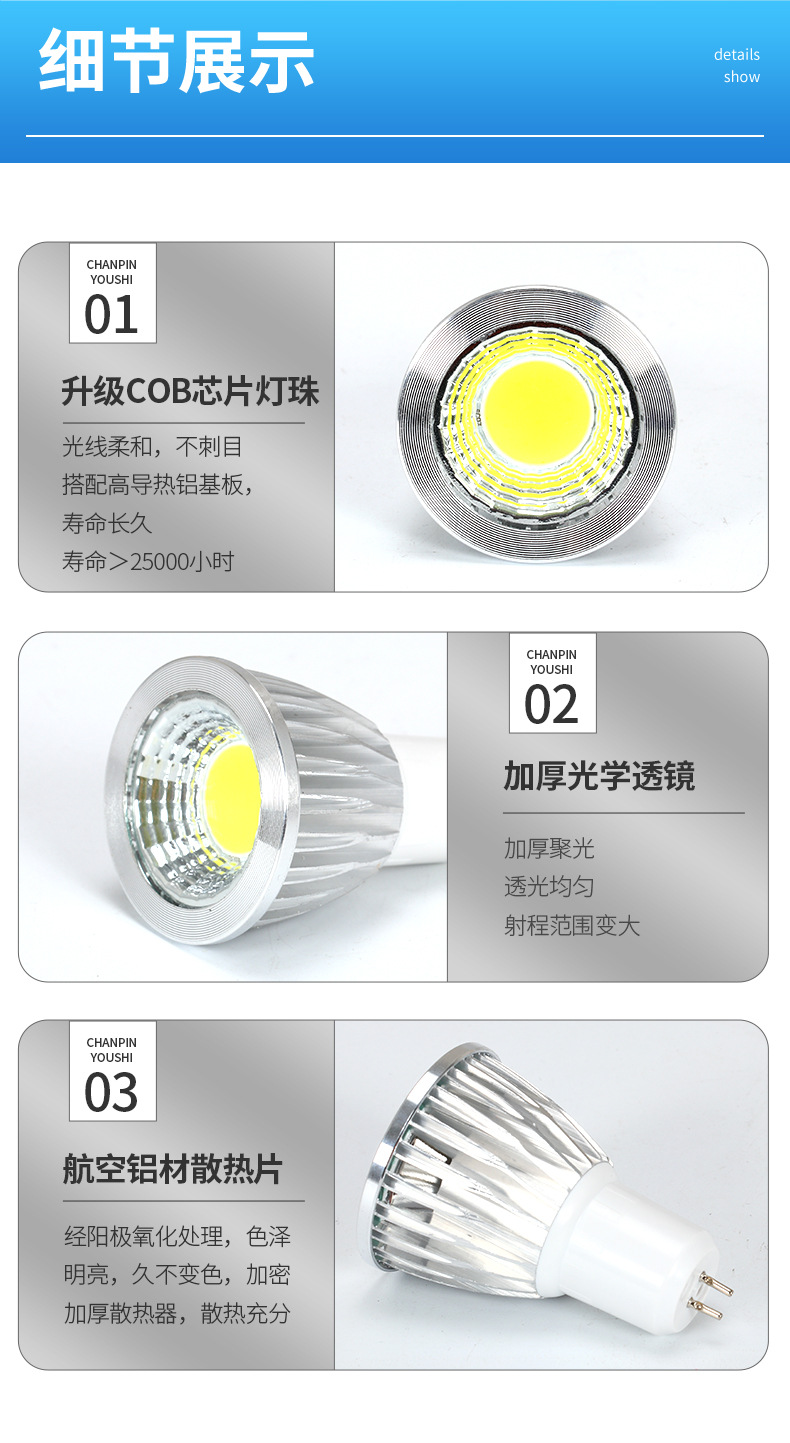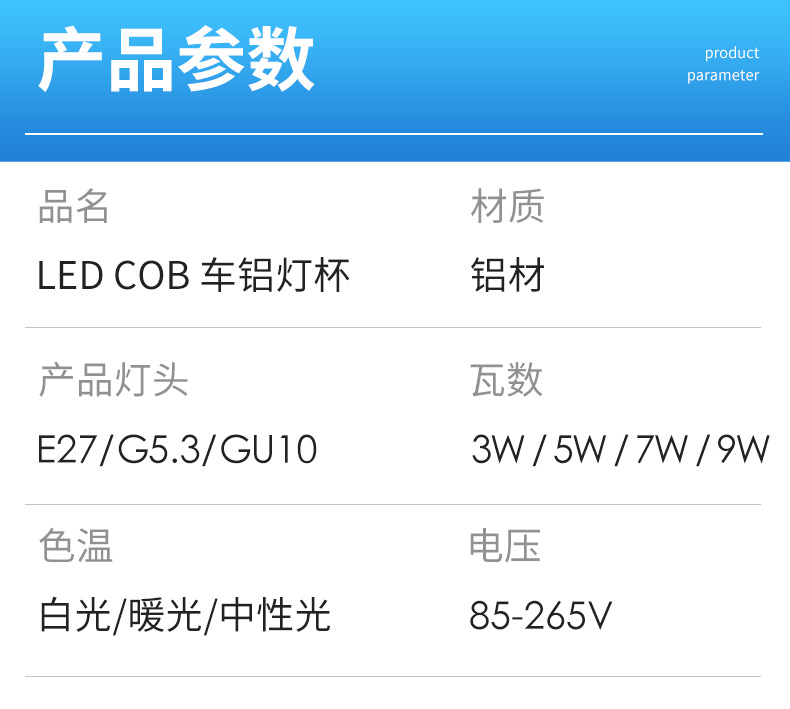 COB автомобиль алюминиевая чашка полное напряжение постоянный ток E27Gu10G53 бытовое коммерческое фото белый свет теплый свет нейтральный свет Светодиодная лампа чашка