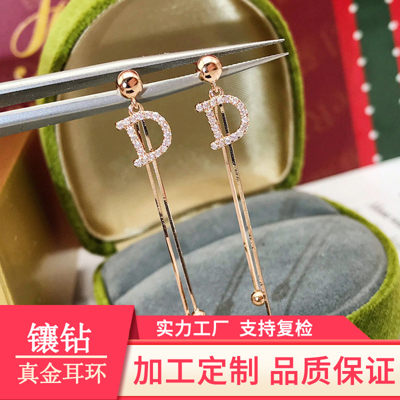 Новые серьги 2025 года, золотые, с натуральными бриллиантами, длинные, в стиле кисточка, простые, из золота 18 карат, с настоящими бриллиантами.