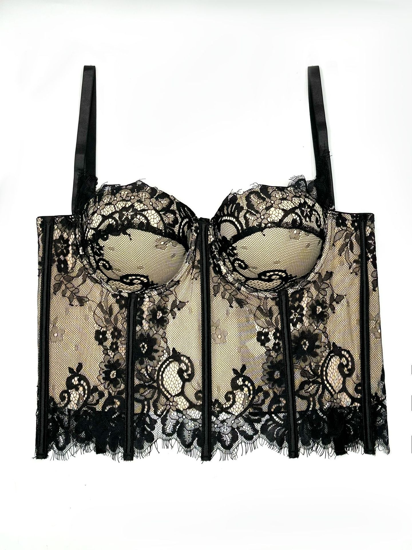 Быстро встряхните горячее сбывание Черное кружево сексуальный полый траурный ремень тонкий жилет с нагрудной подушечкой Топ нижний женский топ