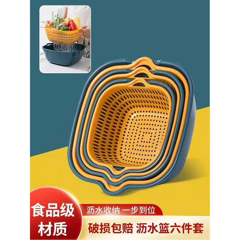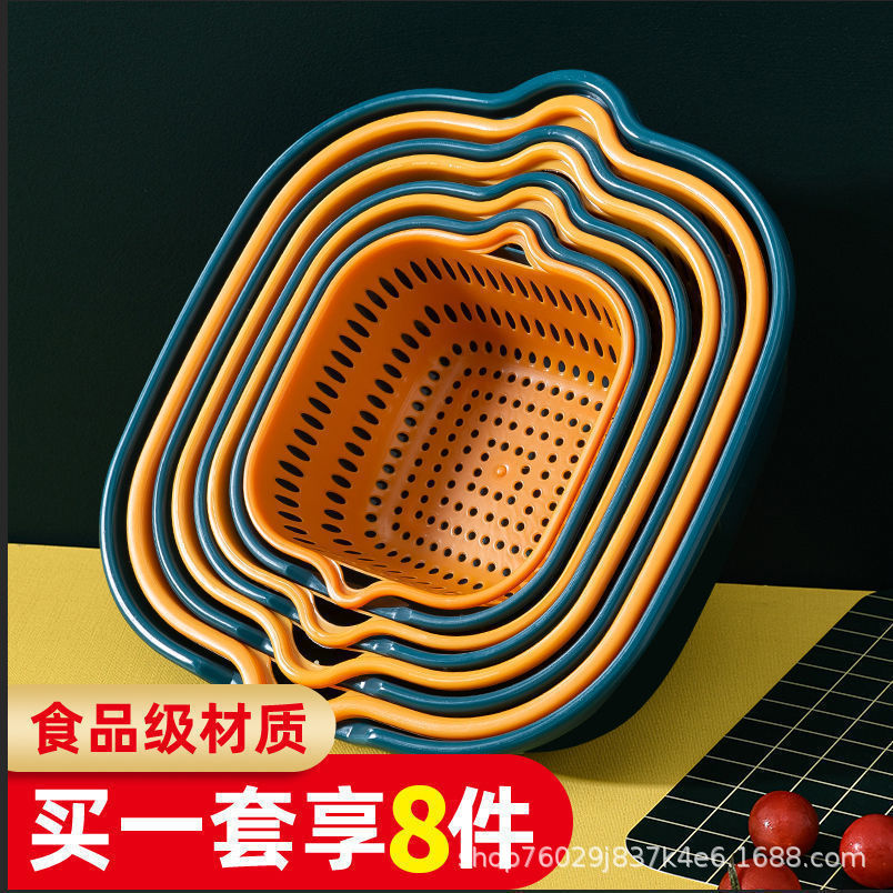 Оптовая утолщенная сливная корзина, набор из 8 предметов, корзина для фруктов, мытье посуды, многофункциональный квадратный набор из 6 предметов, двухслойная раковина для фруктов, полипропиленовый материал