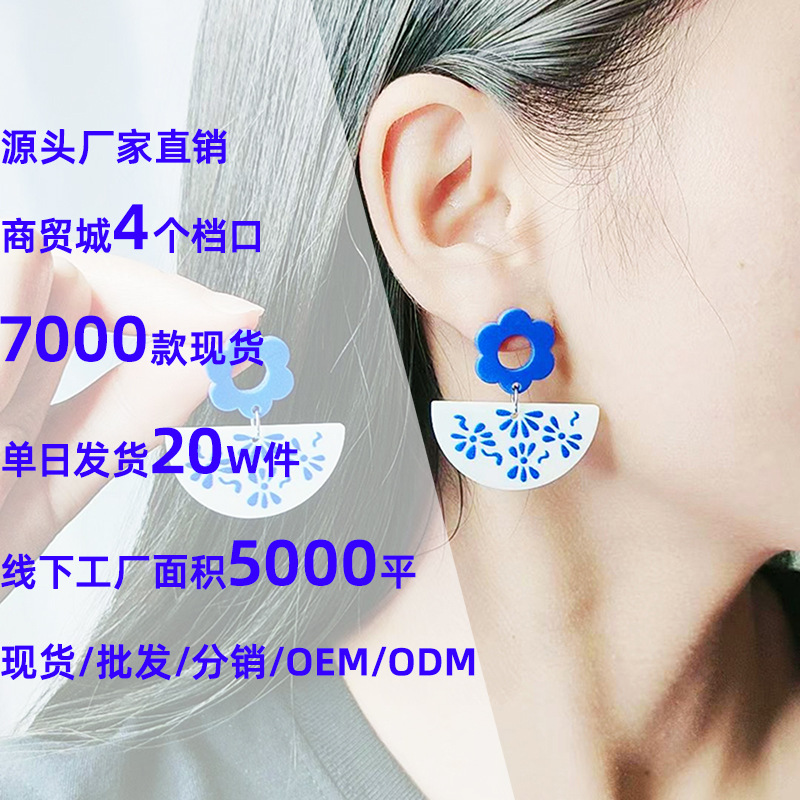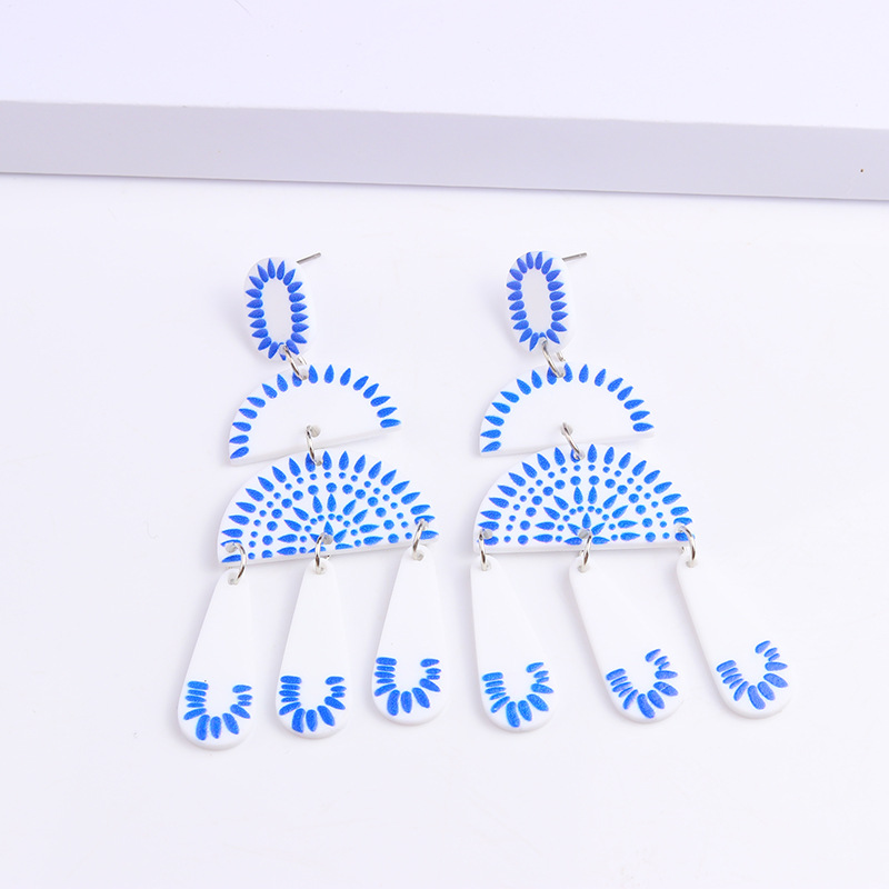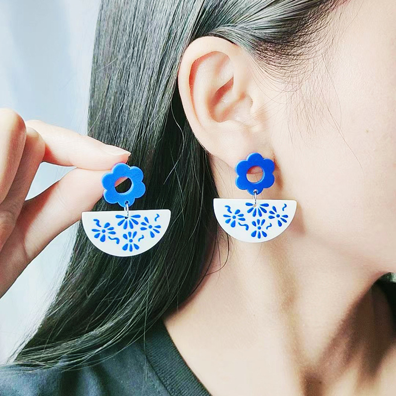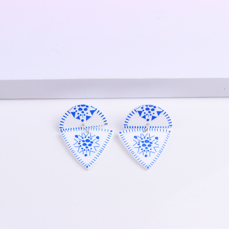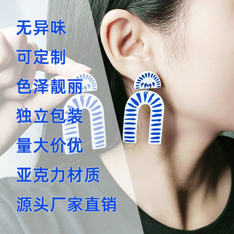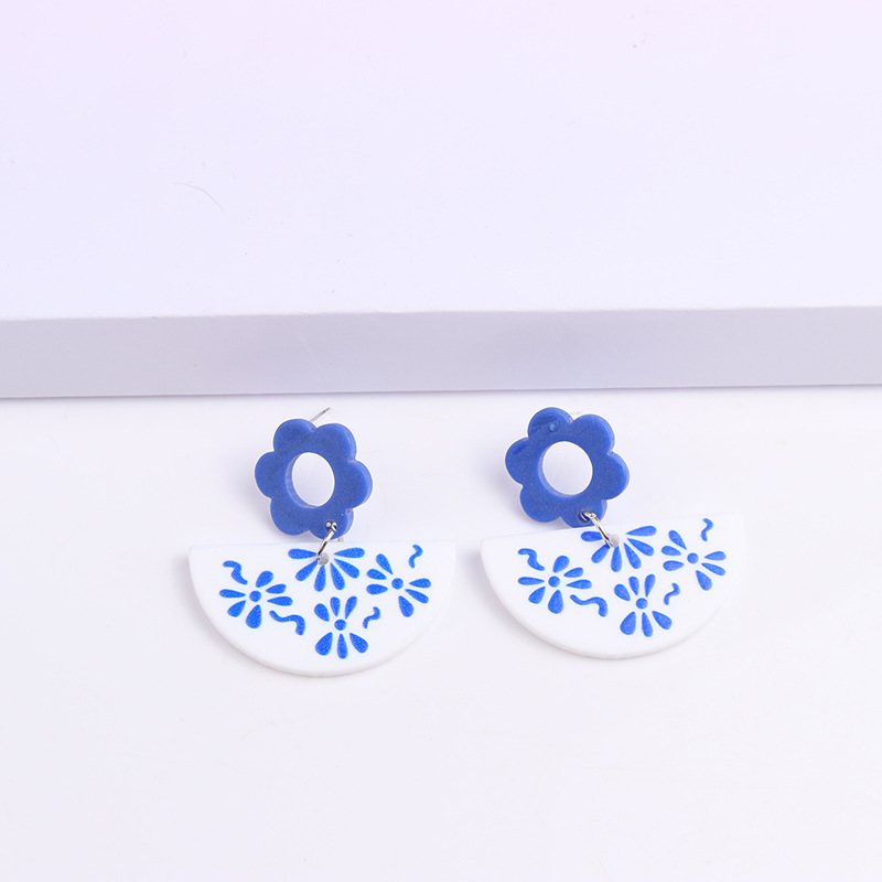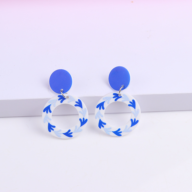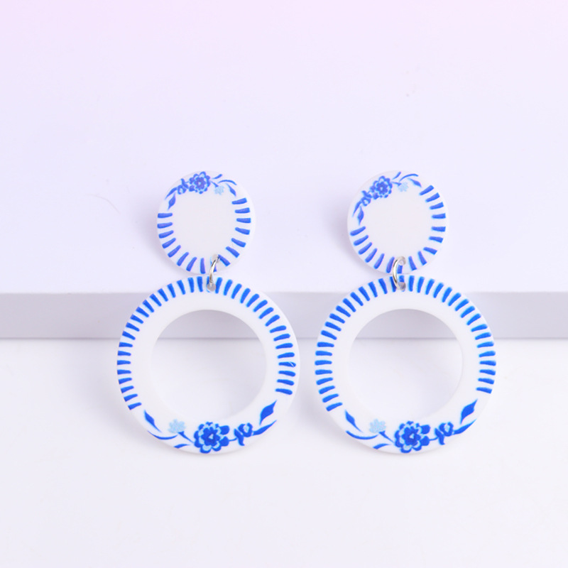 Внешняя торговля синие и белые фарфоровые серьги серии Простые Модные акриловые индивидуальные серьги с принтом украшения для ушей для женщин