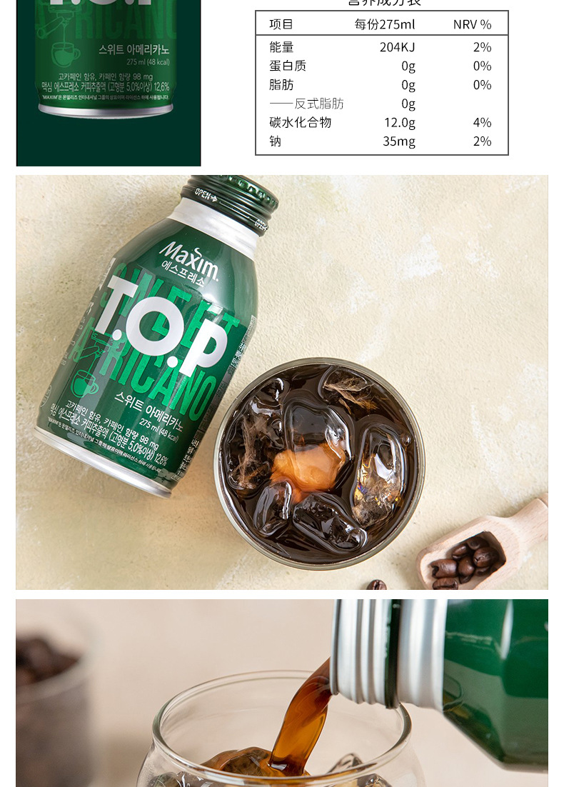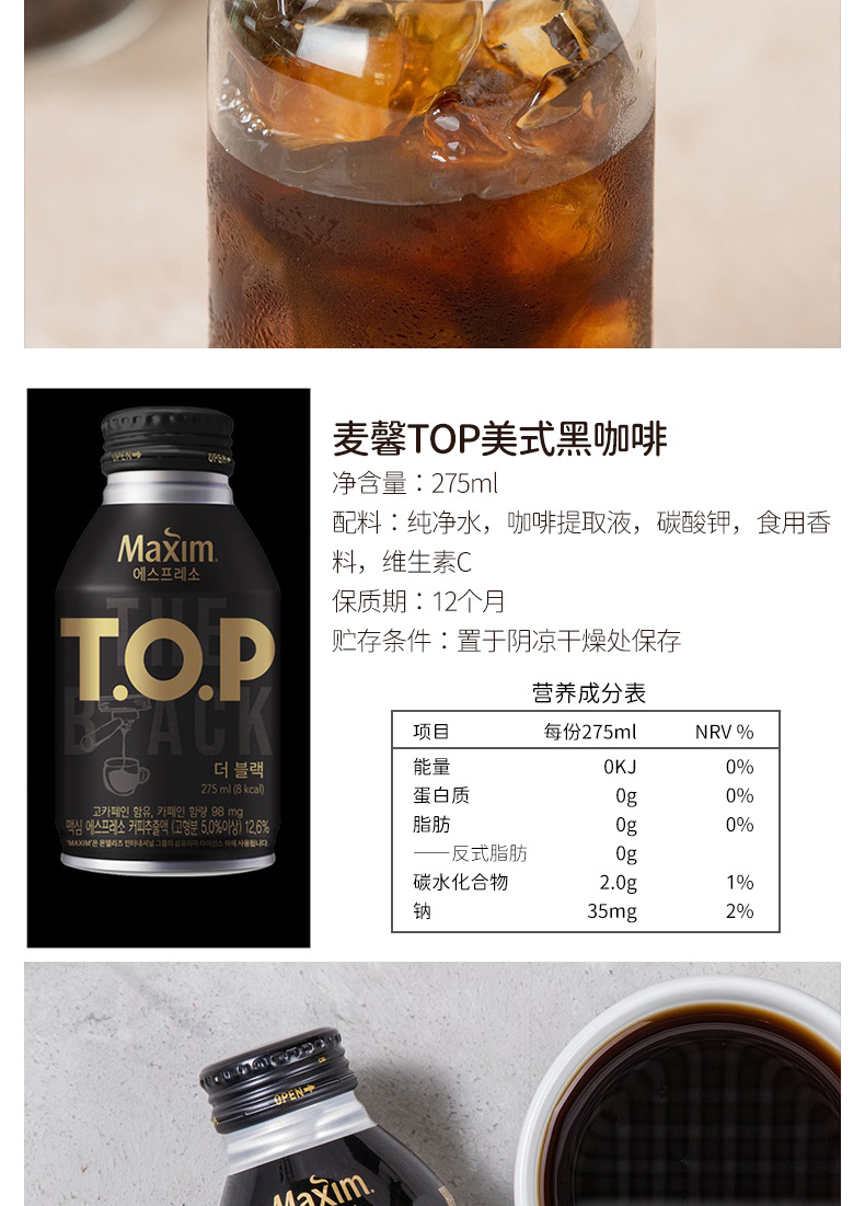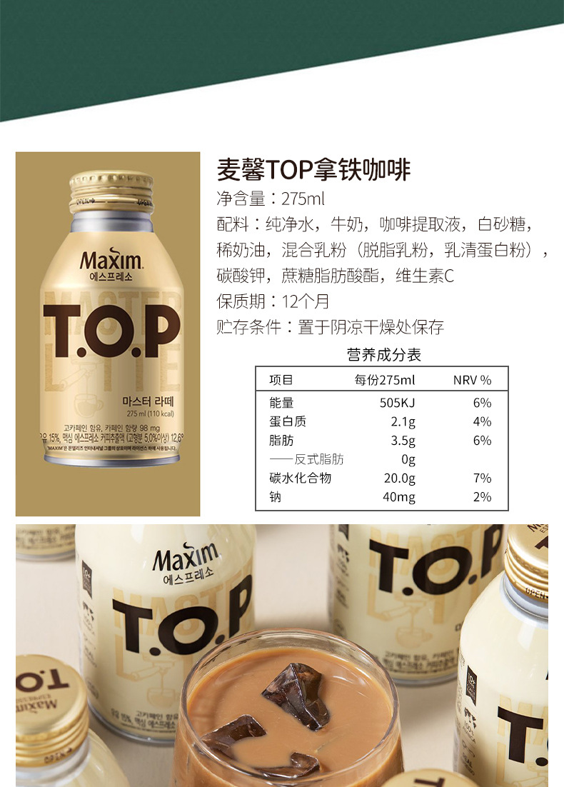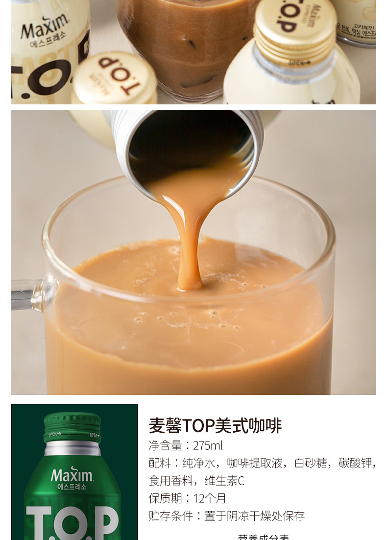 Южная Корея импортировала Maixin TOP шелковистый латте 275 мл американский черный кофе освежающий напиток