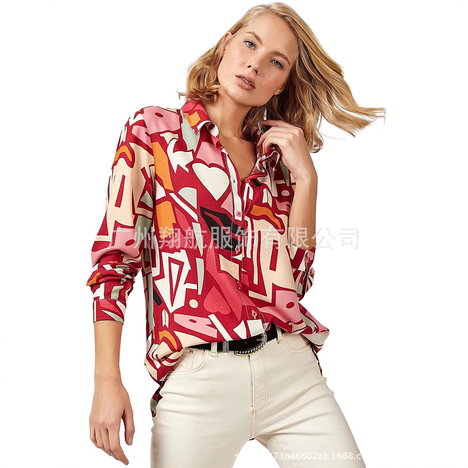 Европейская и американская модная женская мода Amazon, Повседневная рубашка на пуговицах с длинным рукавом, 2022