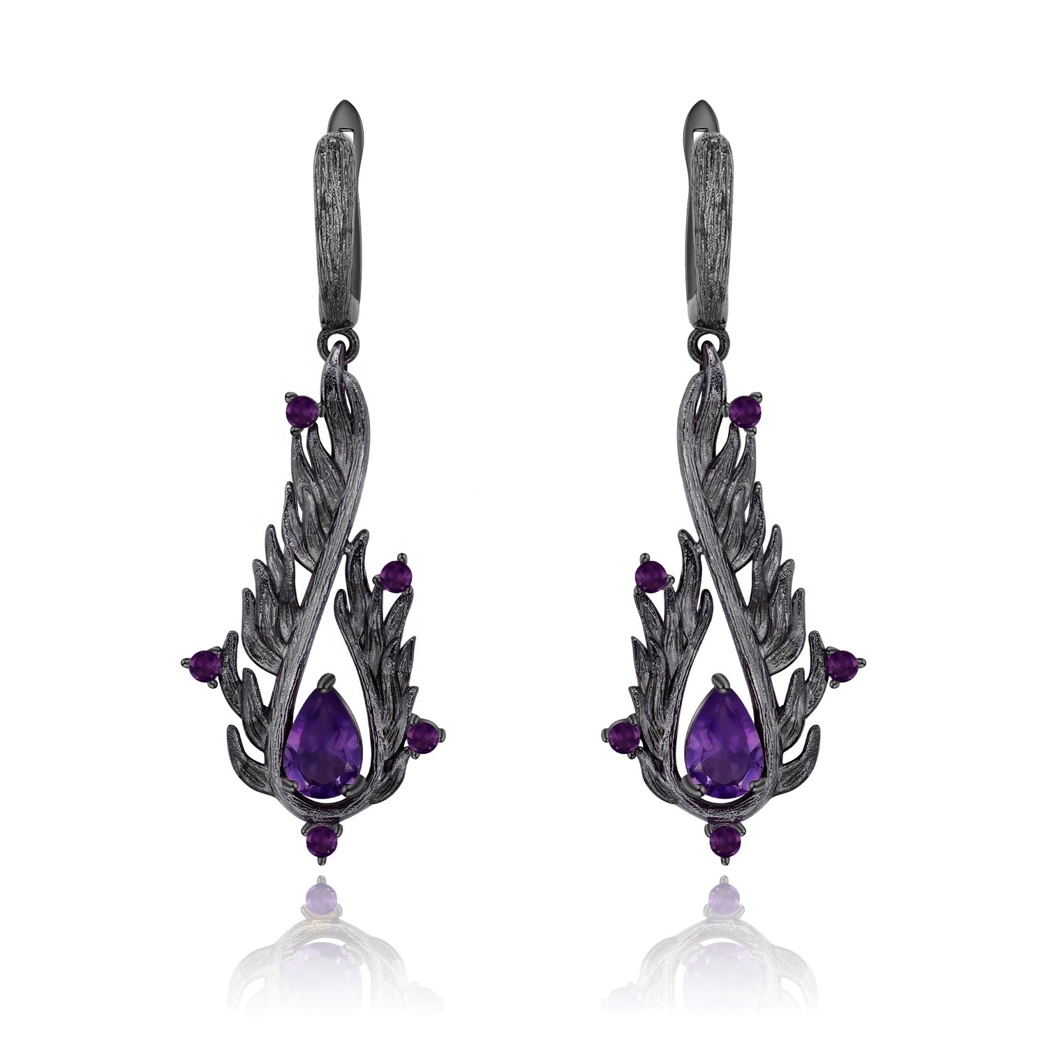 Дизайнерские Серьги высокого чувства в темном стиле в стиле ретро Итальянские ремесла 925 Серебряные серьги из натурального аметиста Серьги