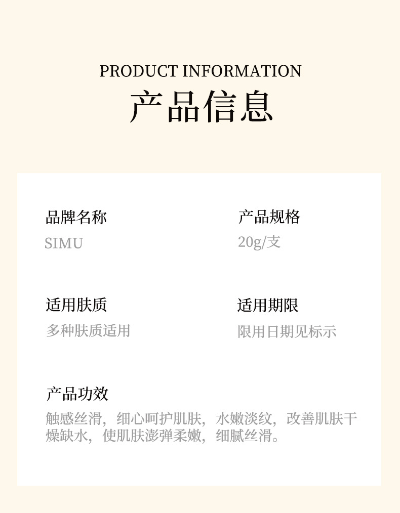 【产品名称】SIMU丝幕赋颜抗皱嫩肤霜