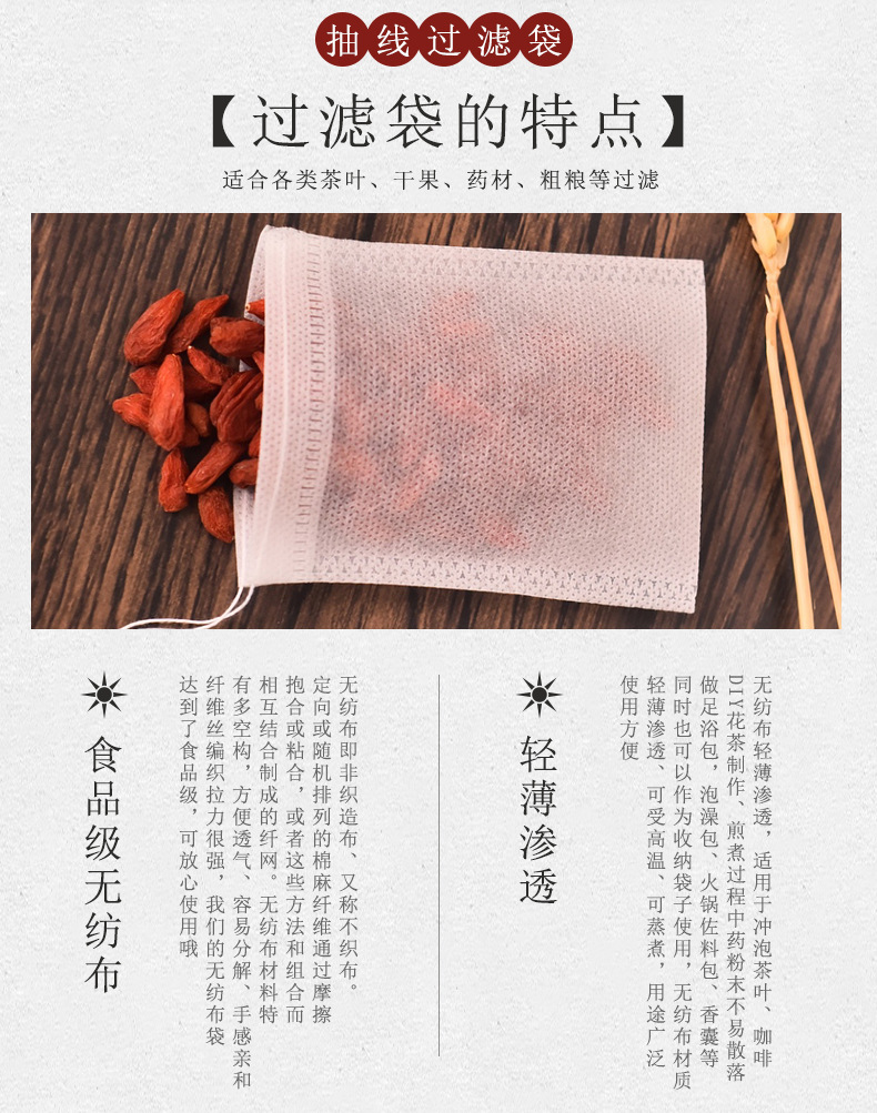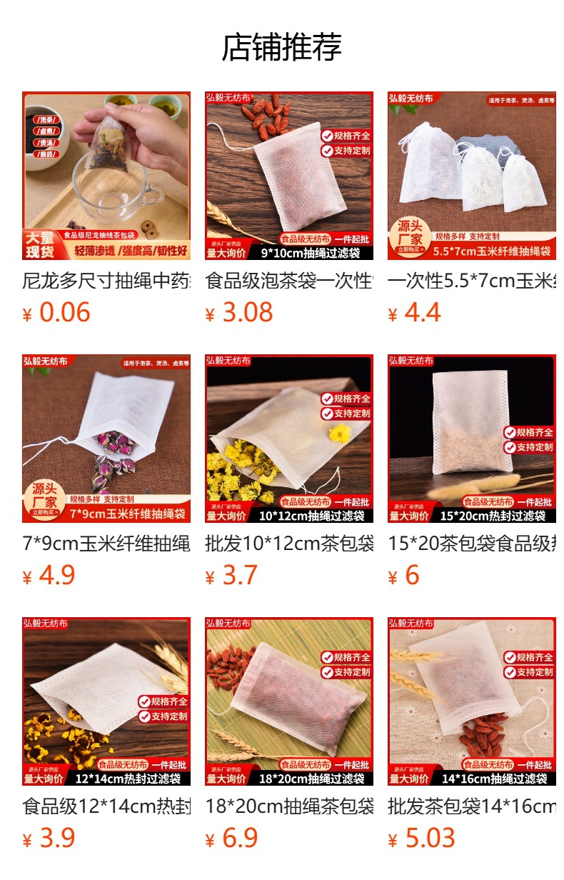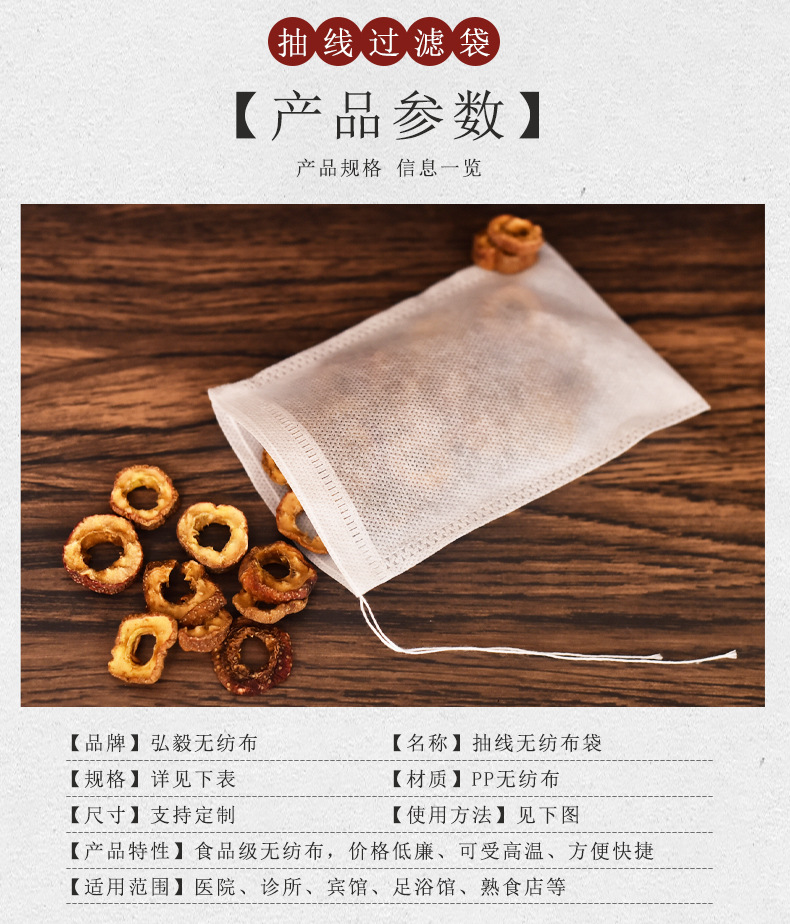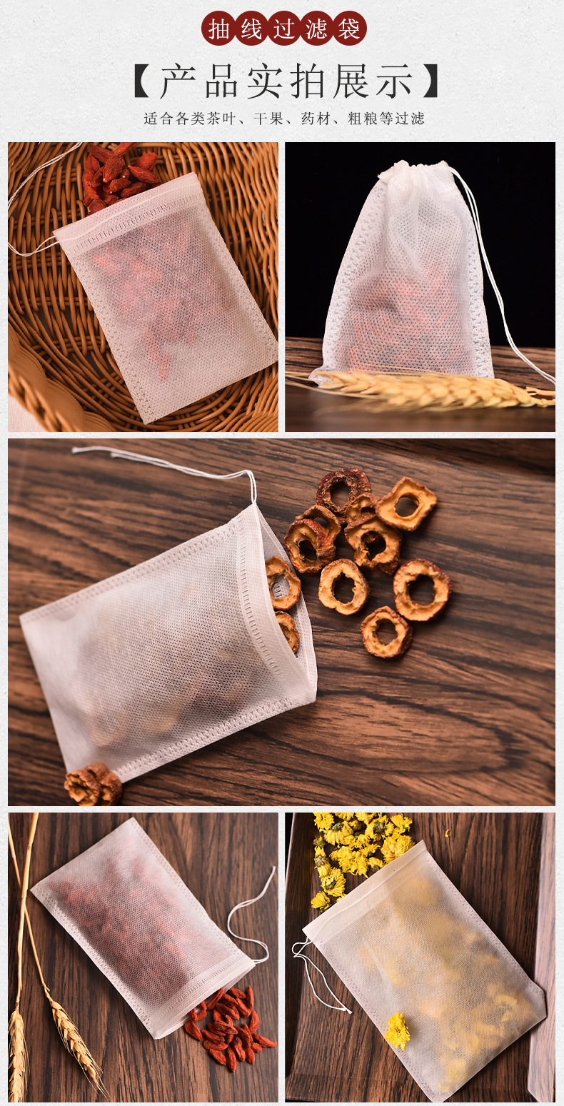 Полноразмерный пакетик чая Дравстринг Нетканый цедильный мешок выпарки Сумка китайской медицины Варя сумку специй мяса Ароматизированный пакетик чая