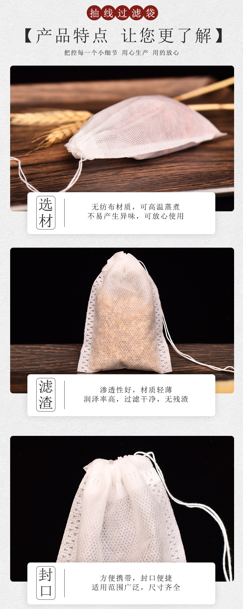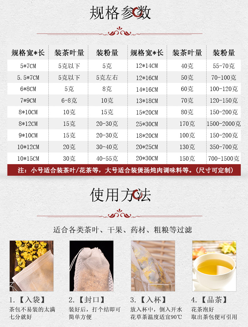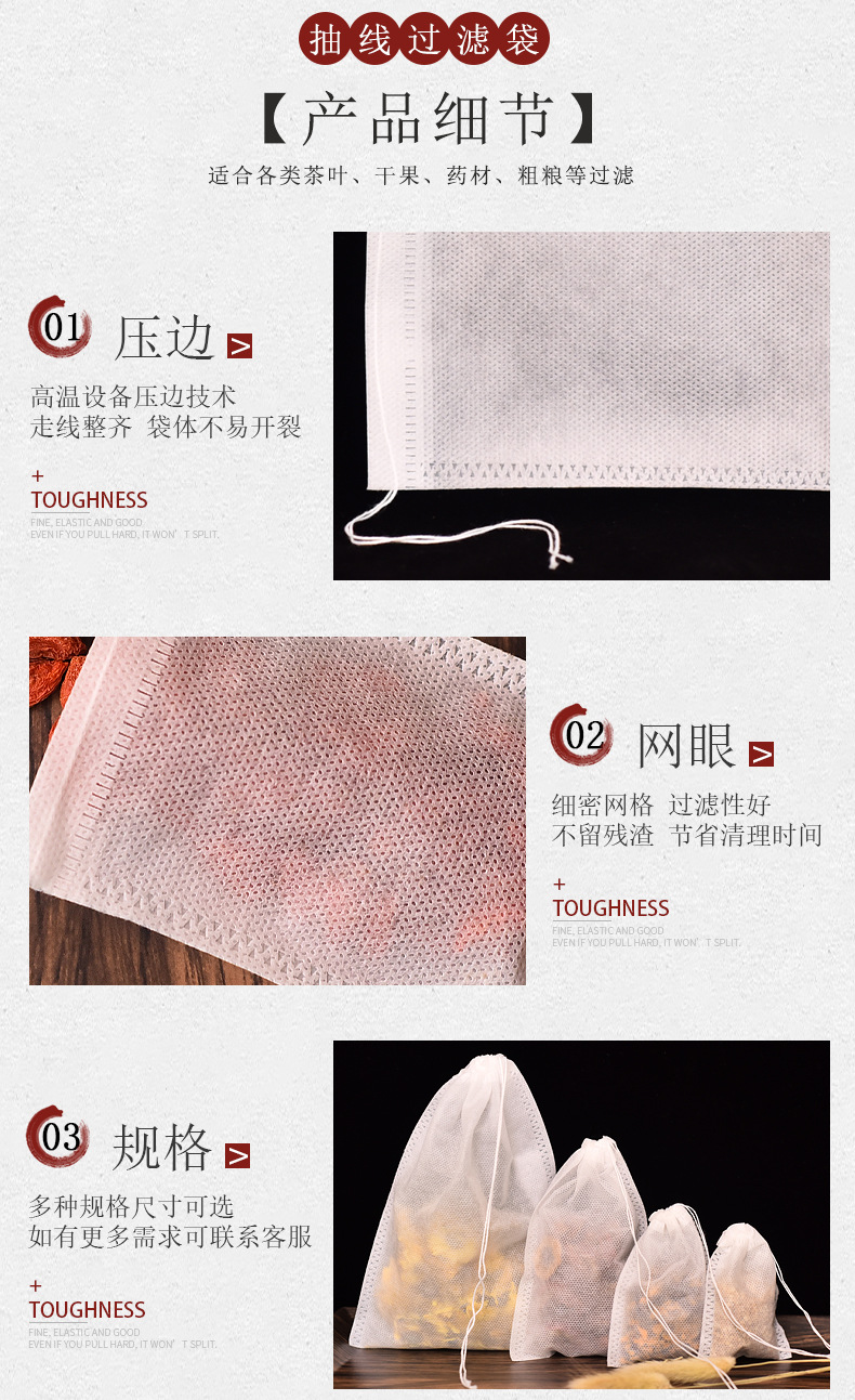 Полноразмерный пакетик чая Дравстринг Нетканый цедильный мешок выпарки Сумка китайской медицины Варя сумку специй мяса Ароматизированный пакетик чая