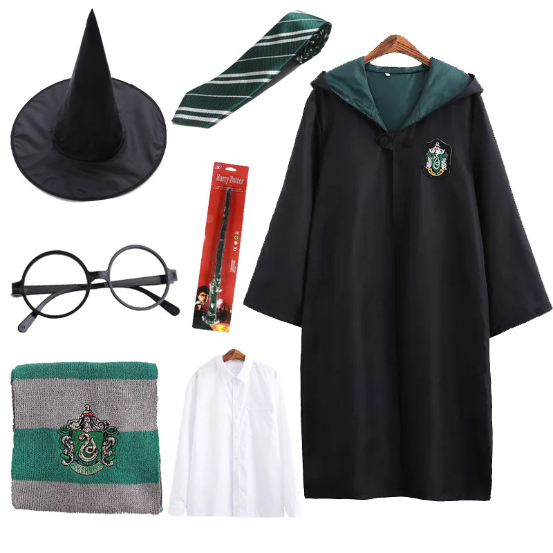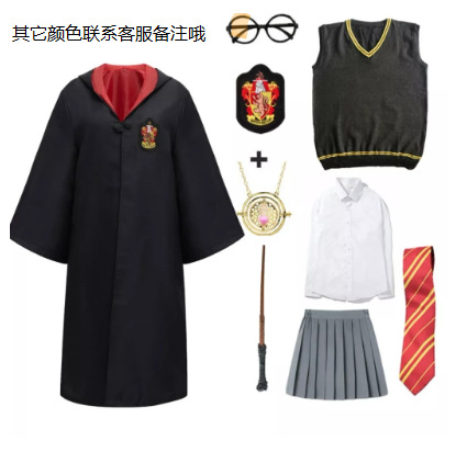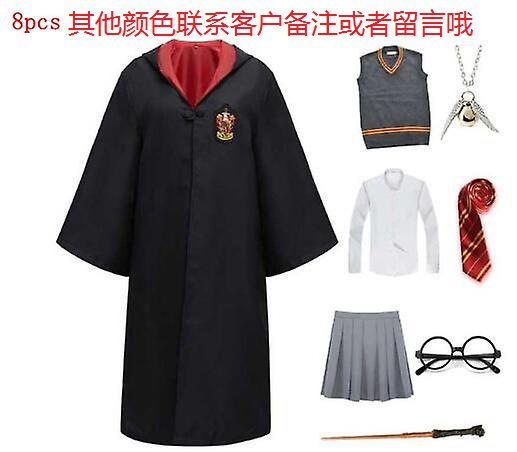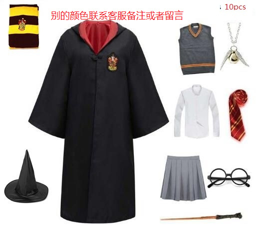 Халат Гриффиндора; Платье Слизерин; Халат Когтевран; Халат Хадгпач; Гриффиндорский халат + галстук; Халат Слизерин + галстук; Халат Когтевран + галстук; Халат Хатчпуддж + галстук; Гриффиндорский халат + галстук + шарф; Халат Слизерин + галстук + шарф; Когтевран халат + галстук + шарф; Халат Hufflepudge + галстук + шарф; Гриффиндорский халат + галстук + шарф + очки + без светящейся волшебной палочки; Халат Слизерин + галстук + шарф + очки + несветящаяся волшебная палочка; Халат Когтевран + галстук + шарф + очки + несветящаяся волшебная палочка; Hufflepudge халат + галстук + шарф + очки + не светящаяся волшебная палочка; Гриффиндорский халат (комплект из шести штук); Халат Слизерин (комплект из шести предметов); Халат Когтевран (набор из шести); Пуффендуй (набор из шести штук); Гриффиндорский халат (комплект из семи); Халат Слизерин (комплект из семи предметов); Халат Когтевран (комплект из семи предметов); Халат Хаффлпафф (комплект из семи предметов); Халат Гриффиндора (комплект из 8 предметов); Халат Слизерин (комплект из восьми предметов); Халат Когтевран (набор из восьми); Халат Hufflepudge (набор из восьми предметов); Гриффиндор восемь частей ожерелье с юбкой; Колье из восьми частей Слизерин с юбкой; Гриффиндорские халаты + очки + значок + колье + волшебная палочка (не светящаяся) + галстук; Гриффиндорский халат + очки + значок + колье + волшебная палочка (не светящаяся) + свитер + рубашка + серая юбка + галстук; Гриффиндорский халат + ожерелье + рубашка + юбка + галстук; Гриффиндорский халат + галстук + шарф + свитер + юбка + рубашка; Гриффиндорский халат + светящаяся волшебная палочка + галстук-значок + очки + Волшебная Шляпа; Гриффиндорский халат + шарф; Халат Гриффиндр + шарф + волшебная шапка + свитер + белая рубашка + серая юбка + галстук + очки + волшебная палочка (нет) + ожерелье вора; Халат Гриффиндр + свитер + белая рубашка + серая юбка + волшебная палочка (нет) + галстук + очки + летящее ожерелье; Халат Гриффиндр + волшебная палочка (нет) + белая рубашка + браслет вора + значок + шарф + шерстяная шапка + очки + ожерелье; Халат Гриффиндр + галстук + свитер + юбка + рубашка