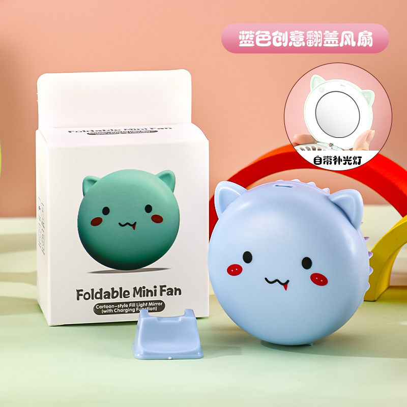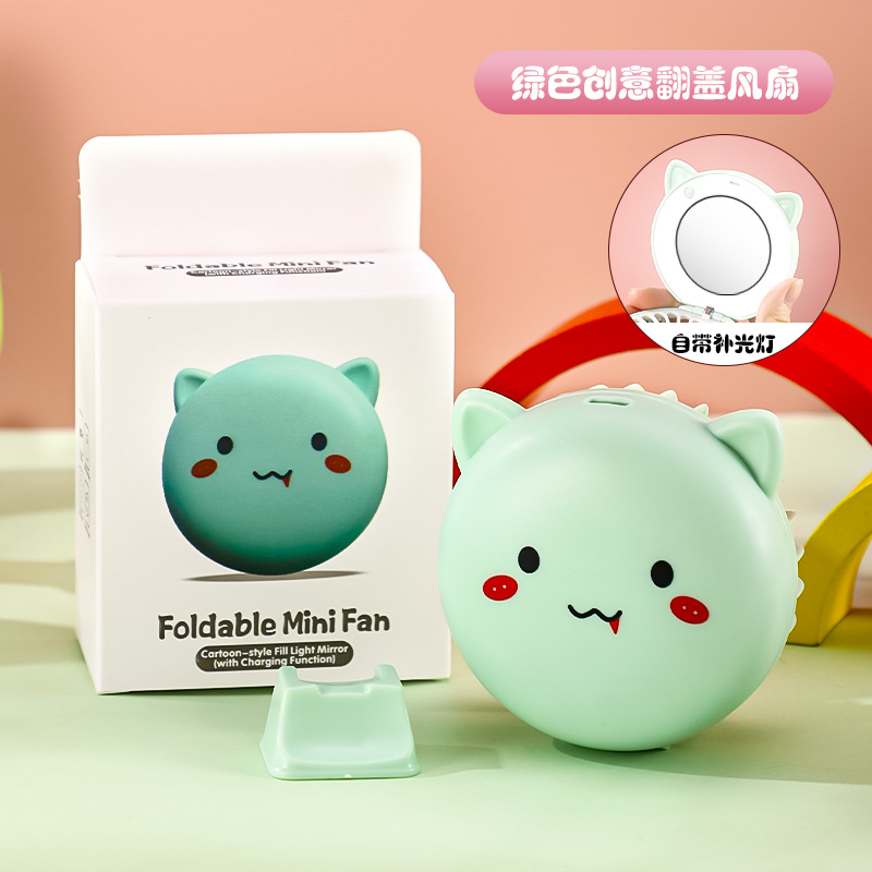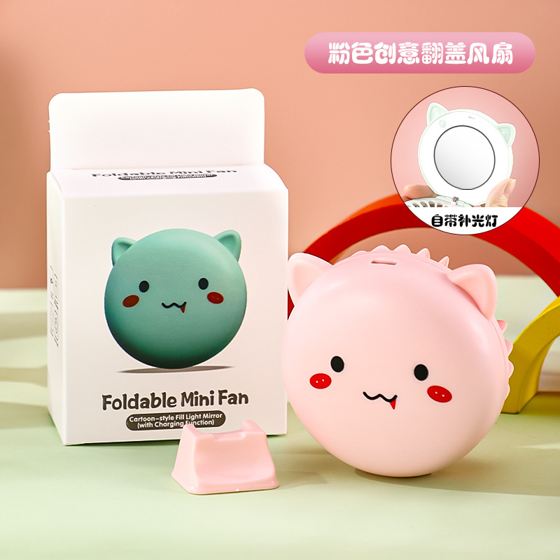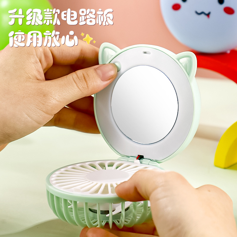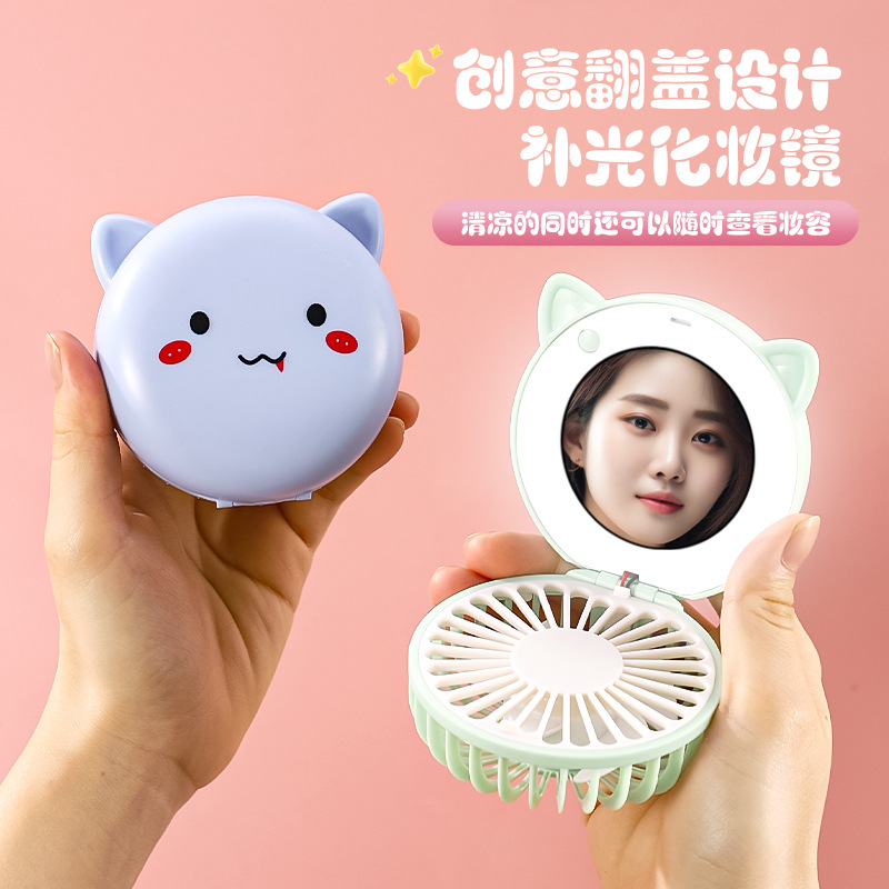 Маленький перезаряжаемый через USB вентилятор, складное зеркало для макияжа с мультяшным дизайном, портативный настольный бесшумный мощный подарок.