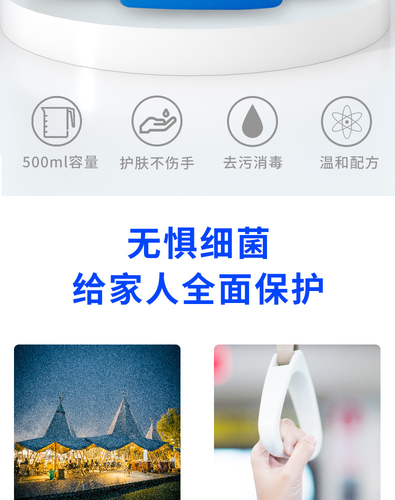Медицинский антибактериальный дезинфицирующий средство для рук, медицинская стерилизация, дезинфекция, обеззараживание и чистка, бытовая мягкая стерилизация, бутылка с прессом 500 мл