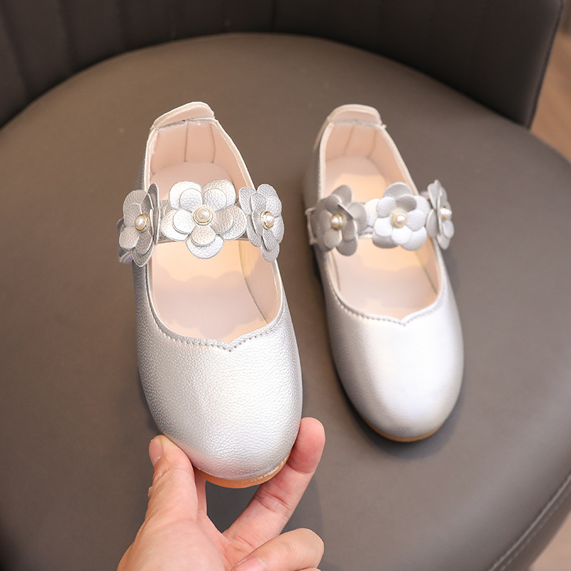 2023 Весна и осень, новая детская Однослойная обувь в Корейском стиле, кожаная обувь для девочек-цветочниц на мягкой подошве, обувь принцессы для больших детей, детская обувь