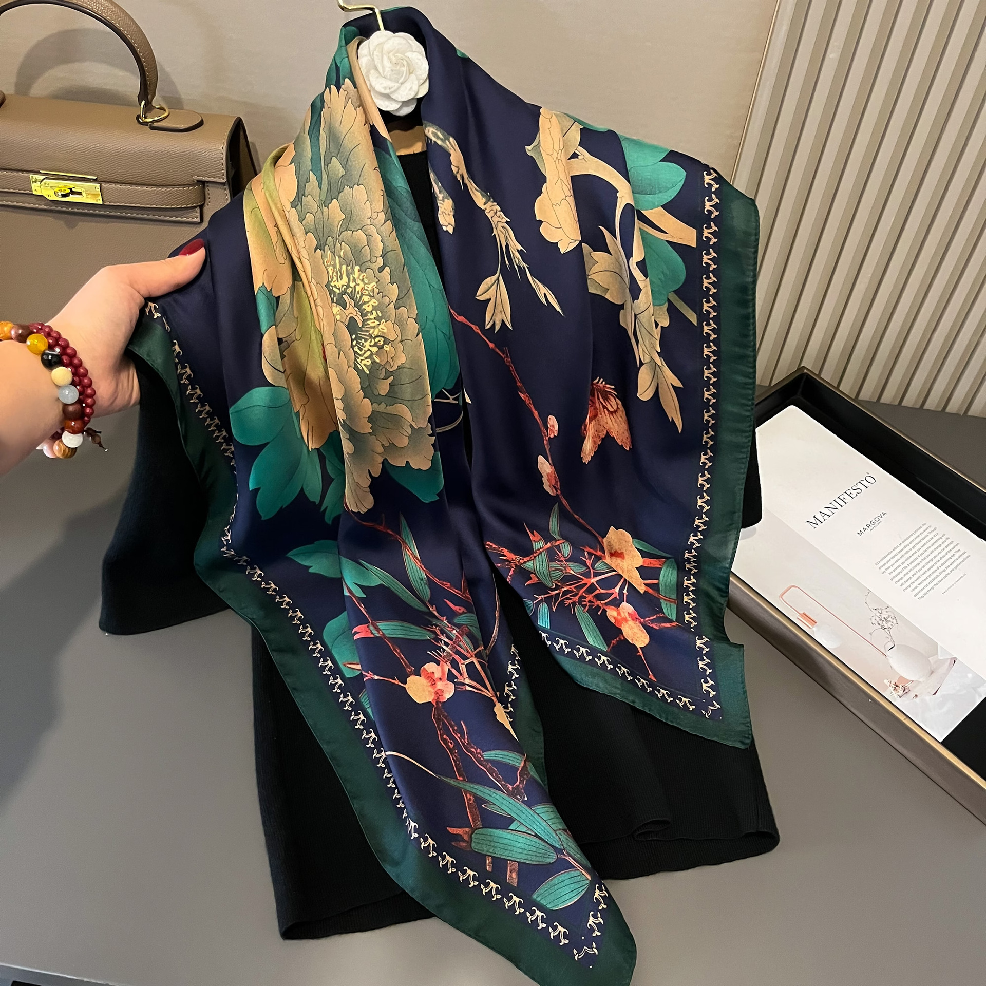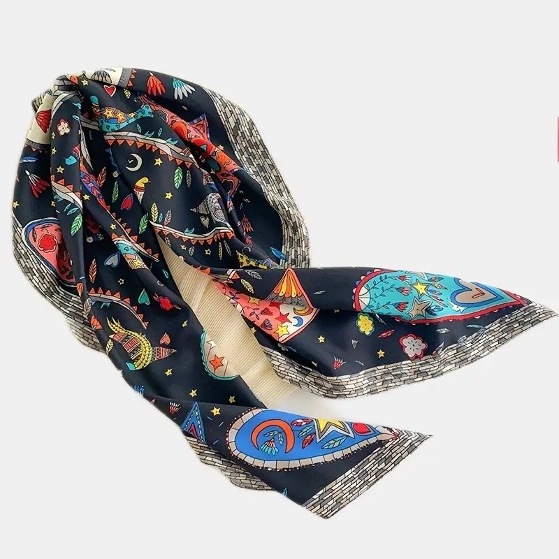 Новый 90 большой квадратный шарф женский буквенный принт четыре сезона модный пейзажный рисунок Ретро Печатный квадратный шарф онлайн Прямая трансляция