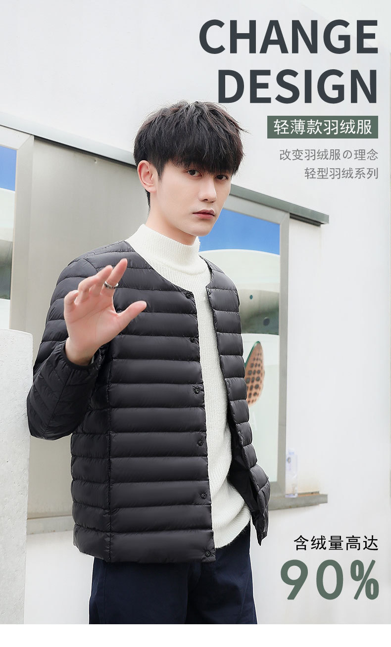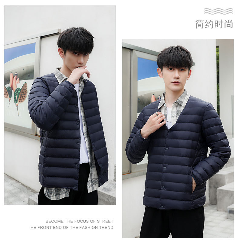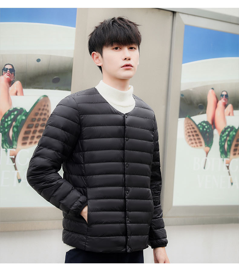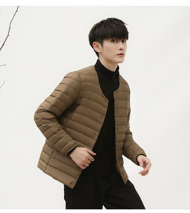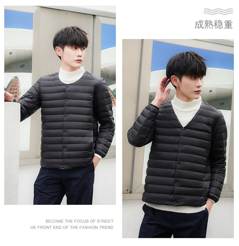 Легкий пуховик без воротника Mao Yan для мужчин, новая зимняя модель, тонкий V-образный вырез, простой и теплый внутренний слой.