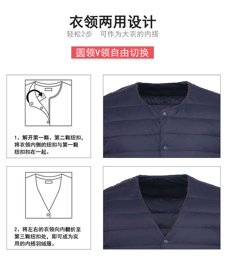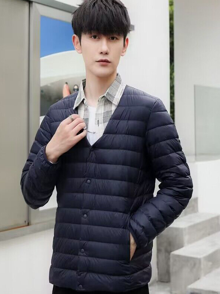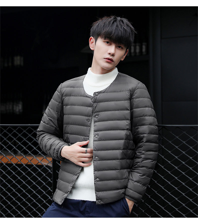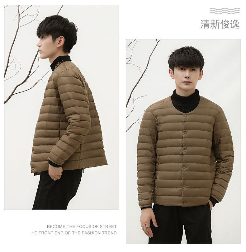 Легкий пуховик без воротника Mao Yan для мужчин, новая зимняя модель, тонкий V-образный вырез, простой и теплый внутренний слой.