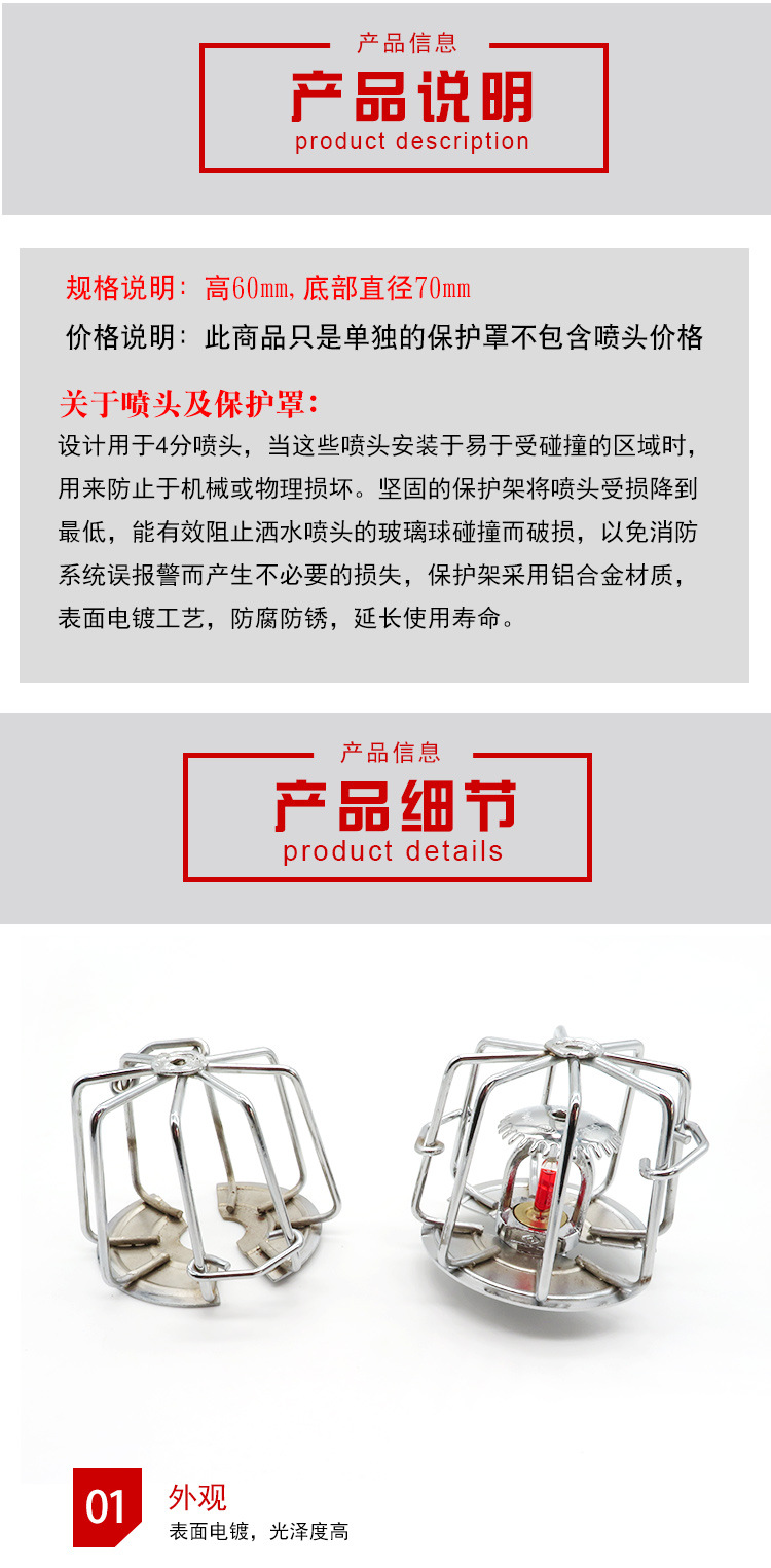 Неразборная головка спринклера, головка спринклера, защитная крышка головки спринклера, защитная крышка, защитный кронштейн для стойки