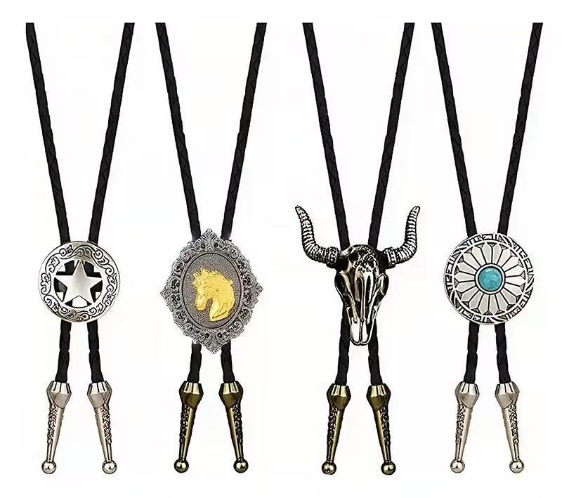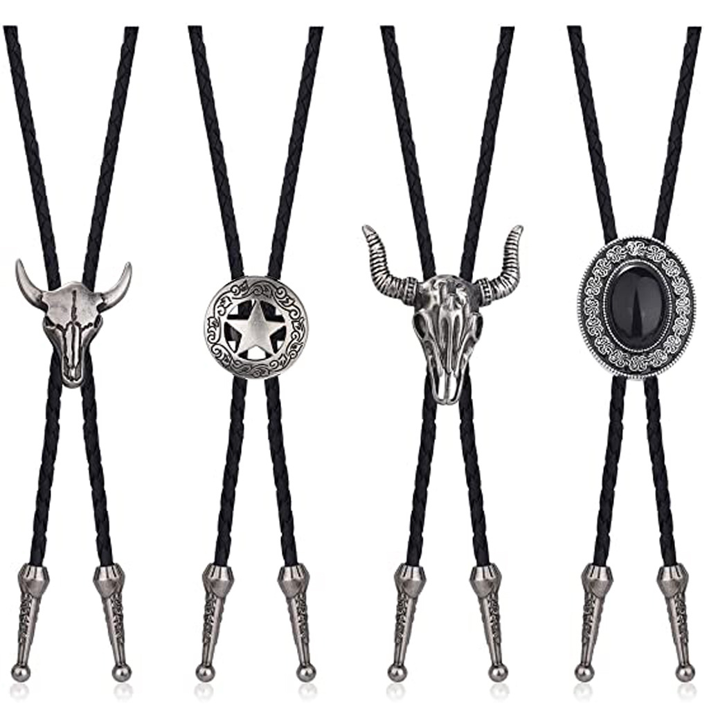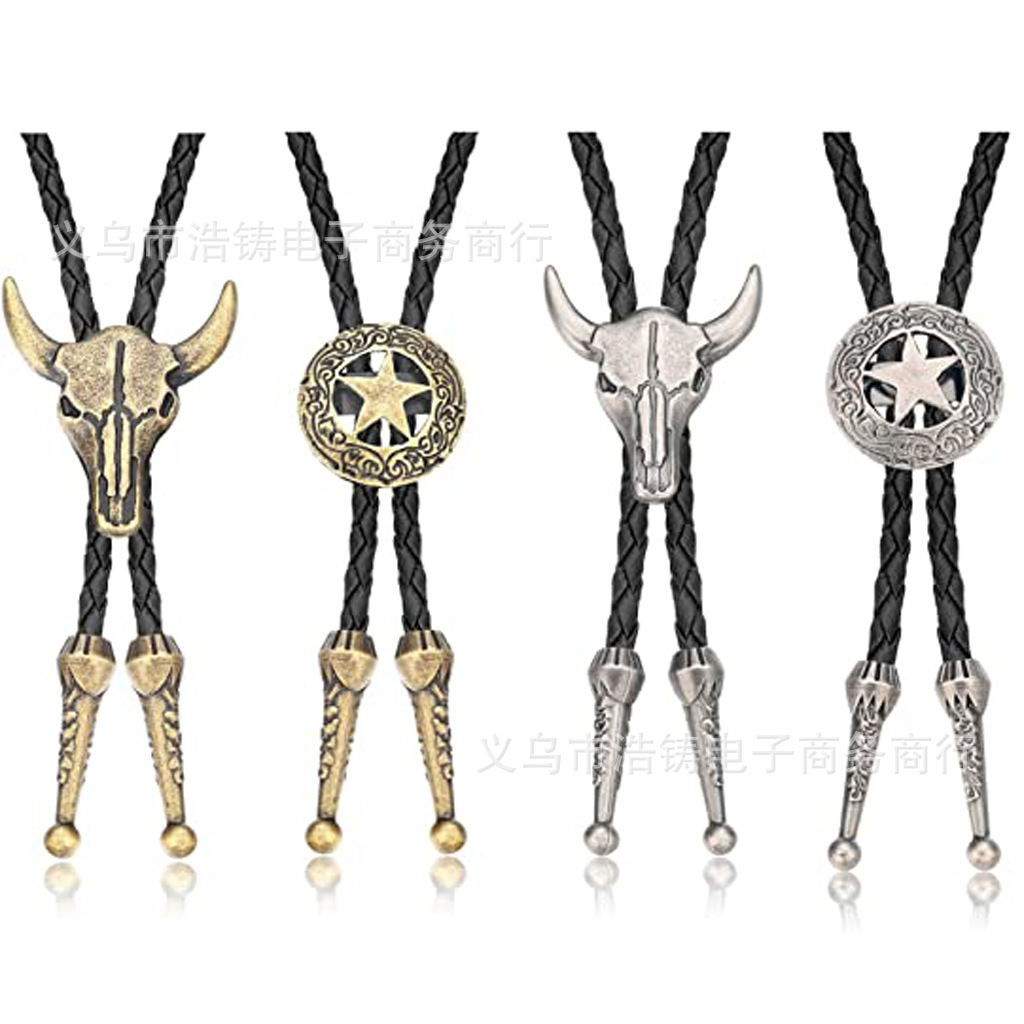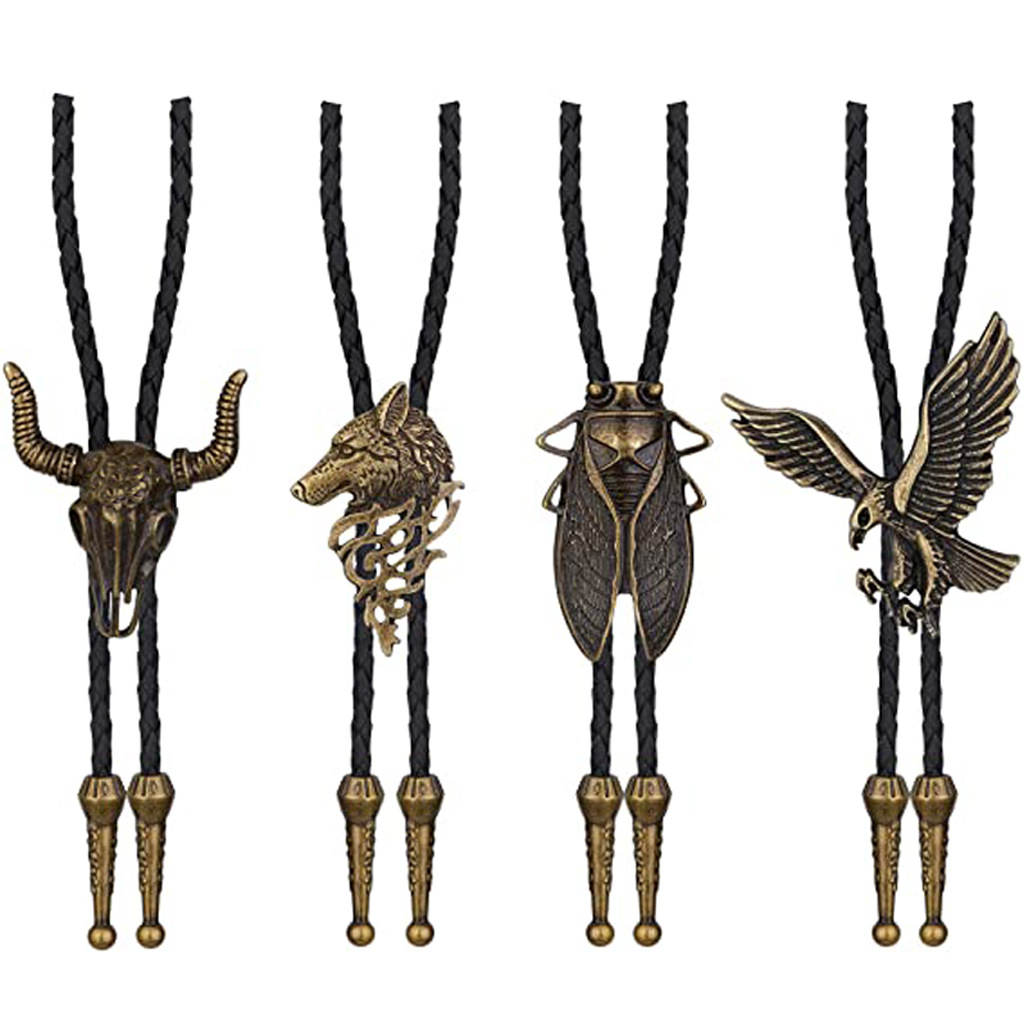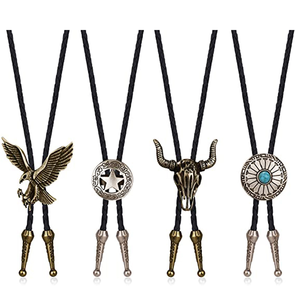 Амазонка Комбинация 4 комплекта голова коровы кулон животное Боло галстук воротник Веревка Американский Западный джинсовый поло галстук