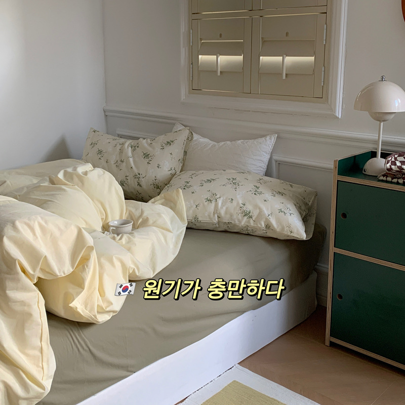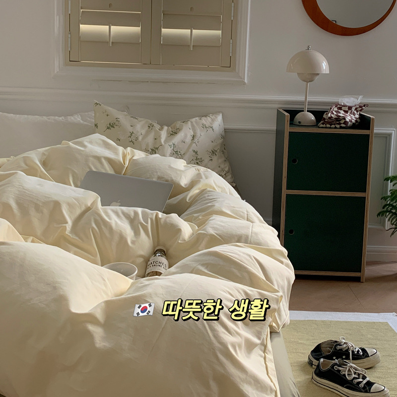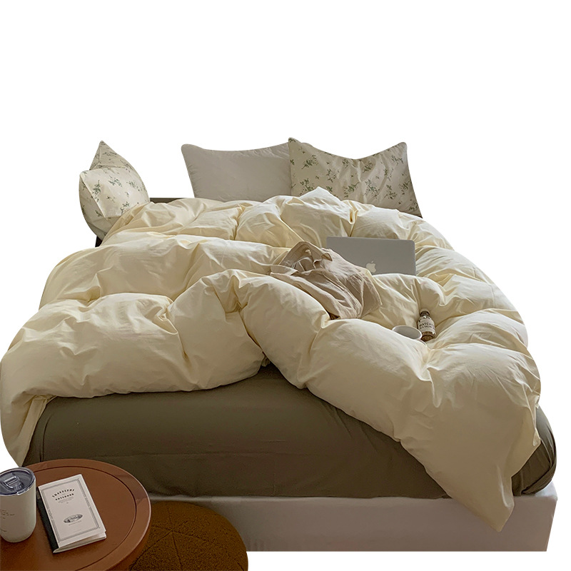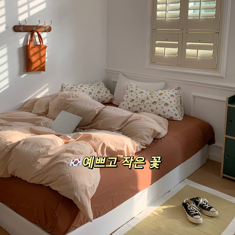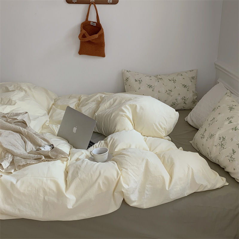 Корейский стиль, пасторальный цветочный комплект из чистого хлопка, состоящий из четырех предметов, однотонный, полностью хлопковый, 1,5 м, 1.8m г., приятный для кожи, простыня из стираного хлопка.