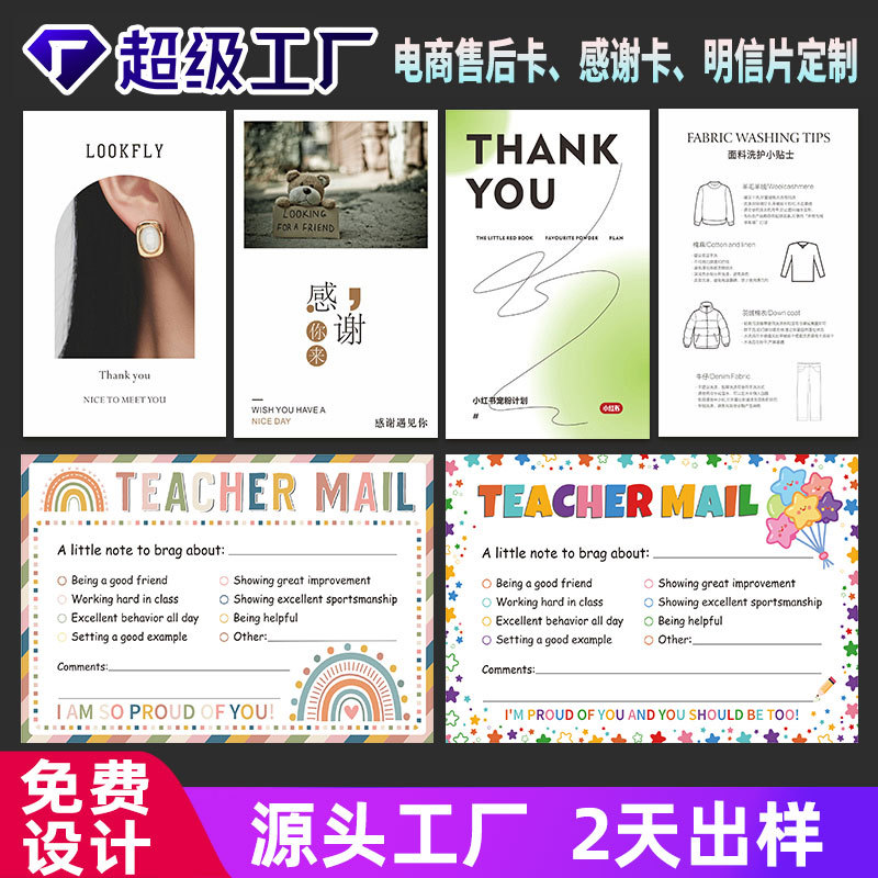 Послепродажная открытка, похвальная открытка, индивидуальная открытка, полусложенная открытка, маленькая открытка, складная открытка, печать благодарственного письма от производителя.