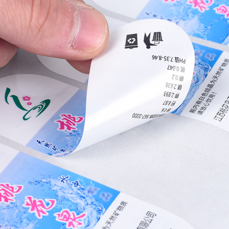 Рулон самоклеящейся этикетки для минеральной воды, печать этикеток с цветным логотипом, двусторонняя наклейка, самоклеящаяся этикетка, термобумага
