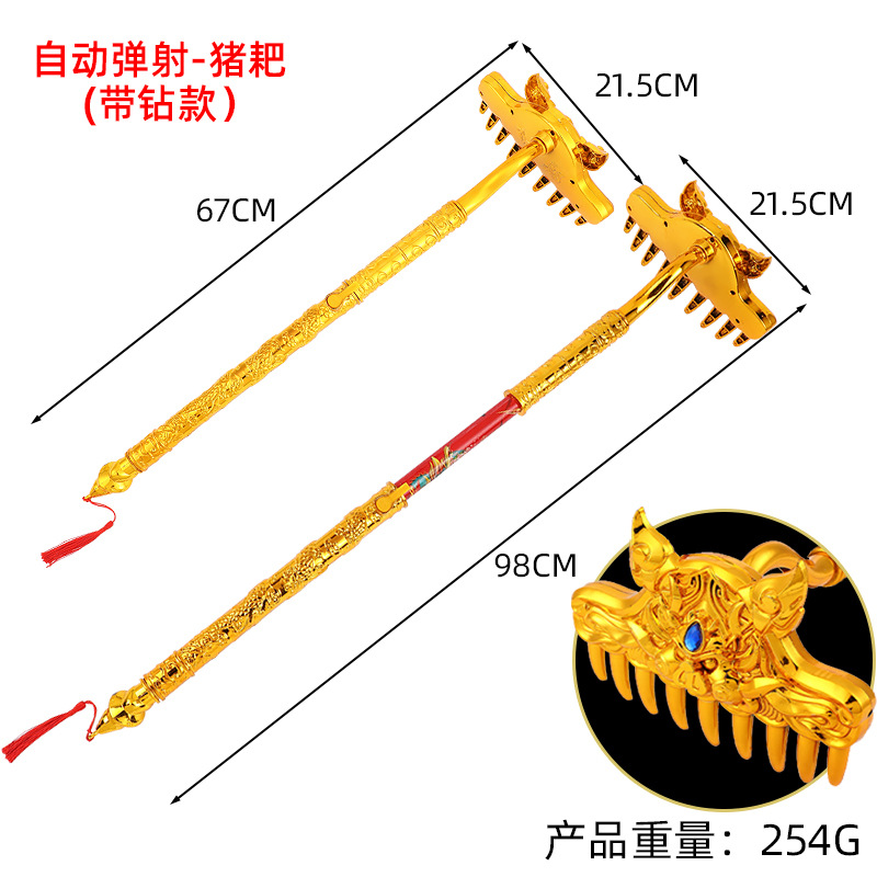 Грабли свиньи с бриллиантами; Грабли свиней без бриллиантов; Автоматическое включение и выключение света; Выдвижная топора светится; Выдвижной пистолет-ракета Erlang Shen; Автоматическая ось выброса; выдвижной ракетный пистолет; Нож Qinglong Yiyue с подсветкой; Хаотан молоток светится; Невыдвижной молоток Haotian с гальваническим покрытием из золота; Автоматический выброс золотистого военного молотка; Автоматический выброс тонкого ножа; Автоматический телескопический тразуб; Автоматический телескопический пистолет-оверлорд; Автоматический телескопический золотой обруч; Автоматическая телескопическая режущая головка с подсветкой для гонга; Автоматический телескопический люминесцентный пистолет со стрелками; Автоматический выброс нижнего сидячего ножа с подсветкой; Автоматический выброс королевского меча; Телескопический захват света; Выдвижной серебряный золотой обруч; Выдвижной обруч из красного золота; Золотой обруч с автоматическим выбросом; Серебряный светло-золотой обруч; Красный светло-золотой обруч; Узорный светло-золотой обруч; Автоматический выброс разноцветных огней, трезуб; затягивание мантри; Новая затягивающая мантра; Маска Таншань