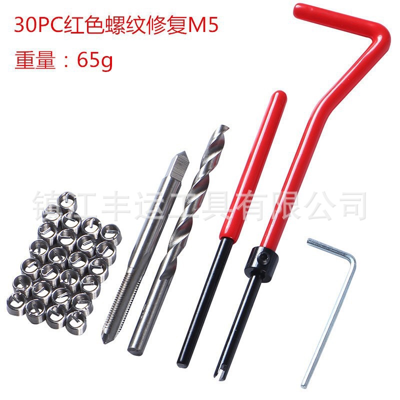 名称:30PC红色螺纹修复器-M5 组合:螺套M5*25个 材料不锈钢