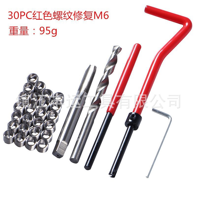 名称:30PC红色螺纹修复器-M6 组合:螺套M6*25个 材料不锈钢