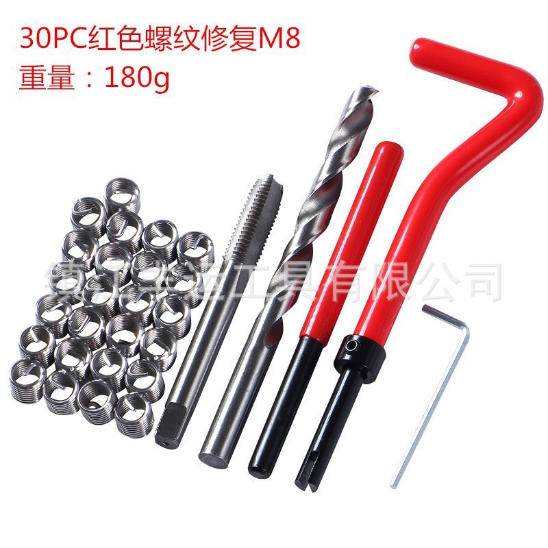 名称:30PC红色螺纹修复器-M8 组合:螺套M8*25个 材料不锈钢