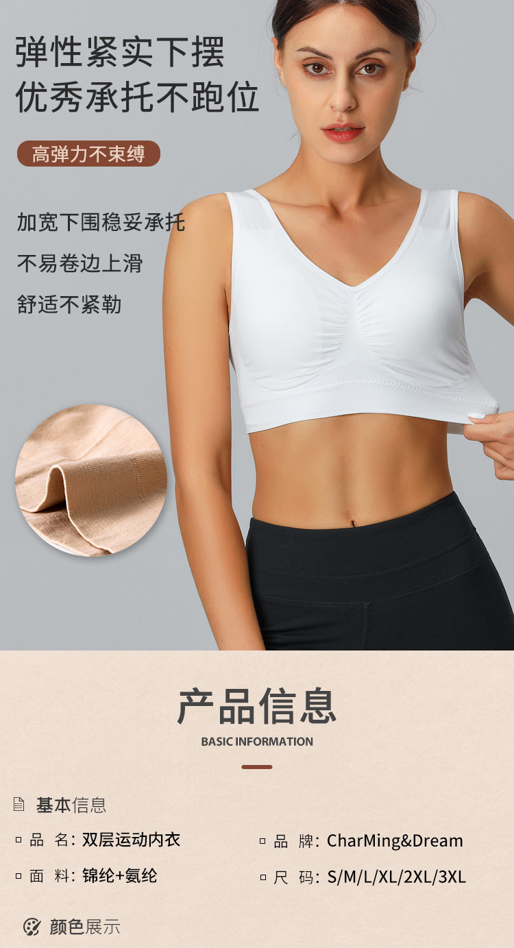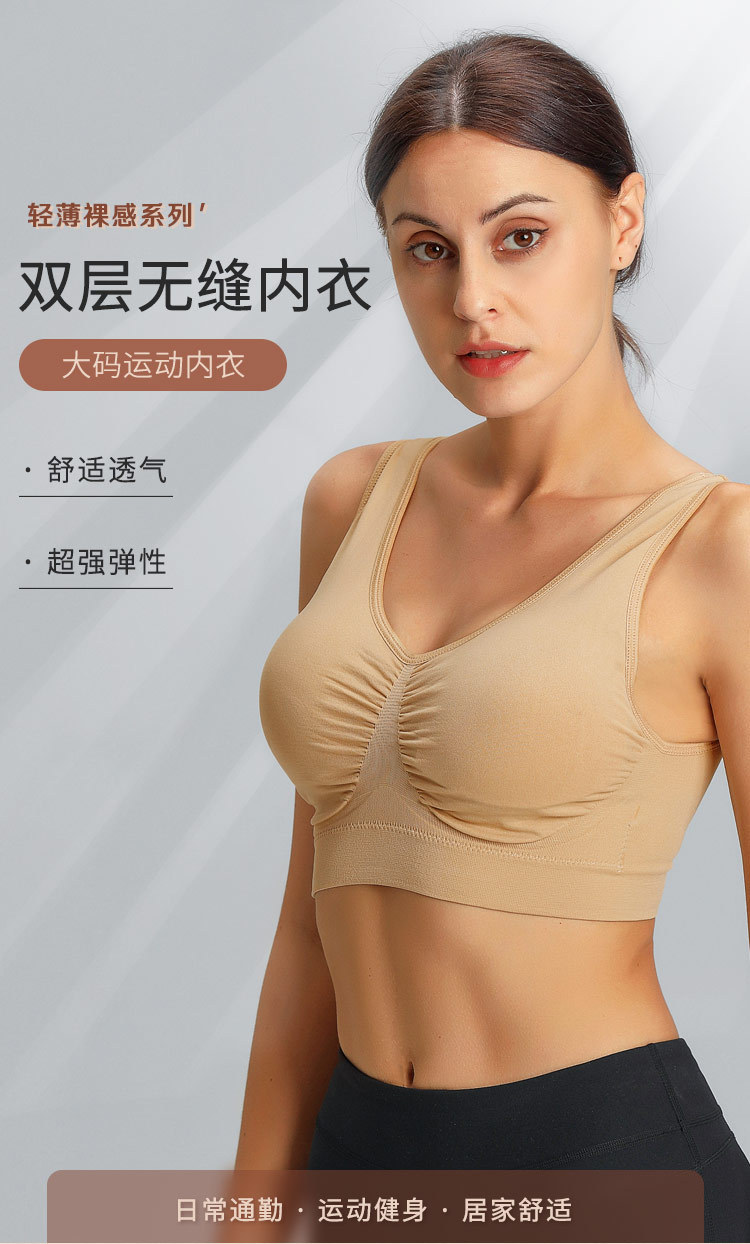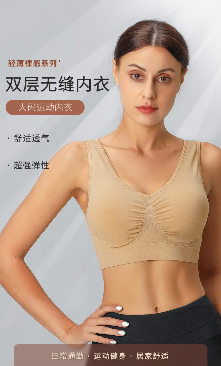 Спортивный бюстгальтер трансграничный плюс размер беспроводной плюс размер спортивный бюстгальтер двухслойный бесшовный спортивный бюстгальтер с регулировкой йоги спортивное белье