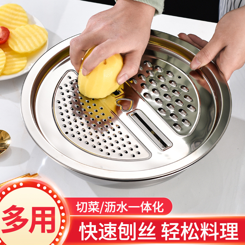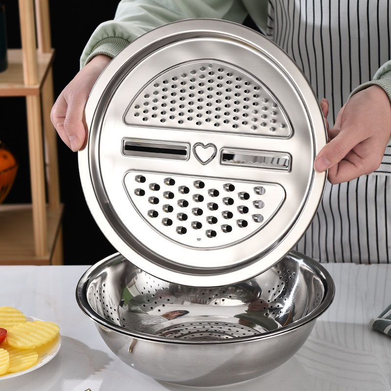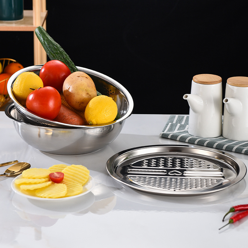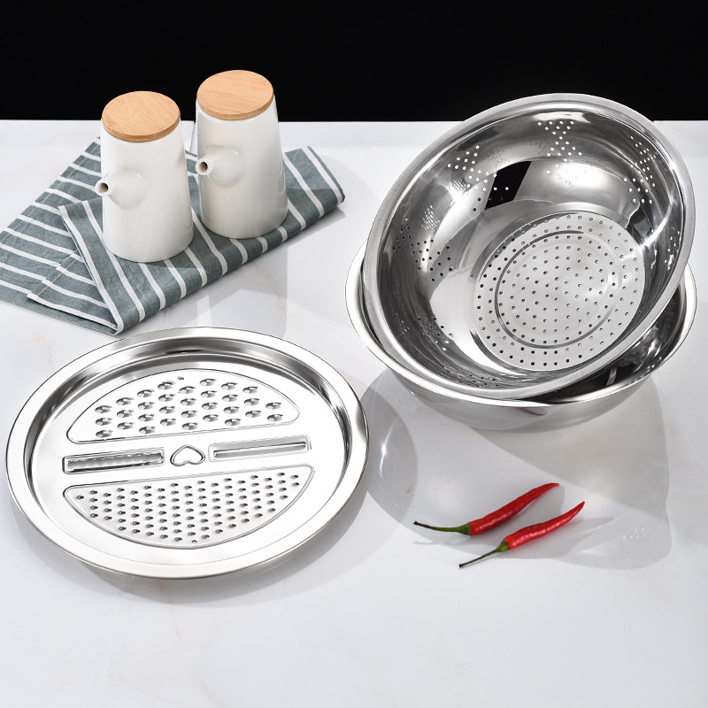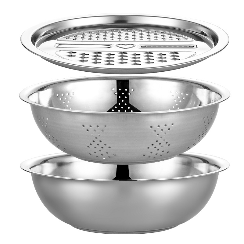 Набор из трех предметов: универсальная миска из нержавеющей стали, терка, сито для риса, миска для приправ, дуршлаг, супница