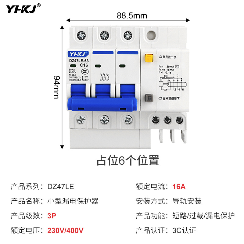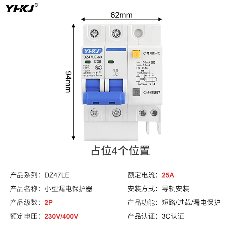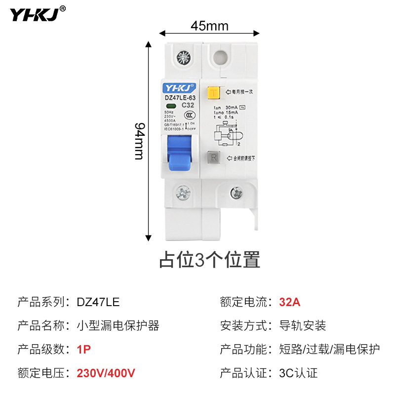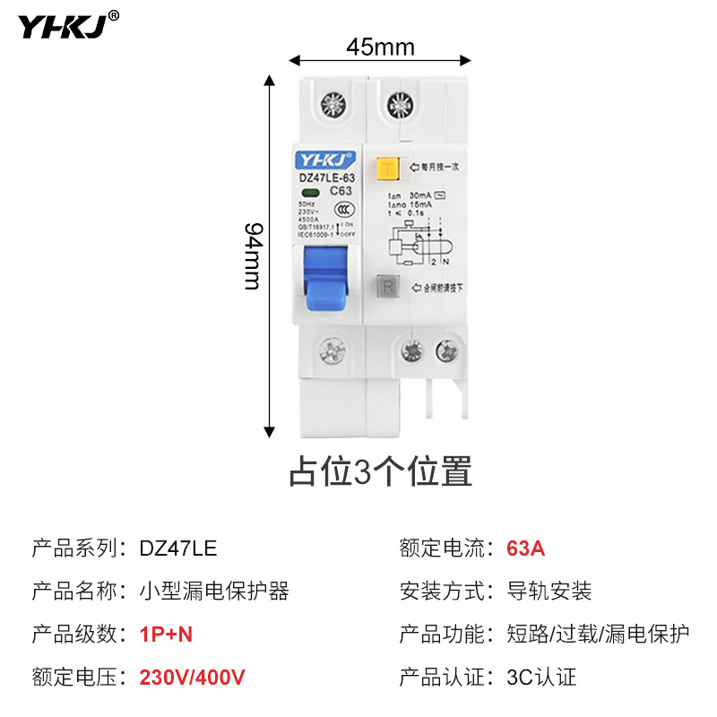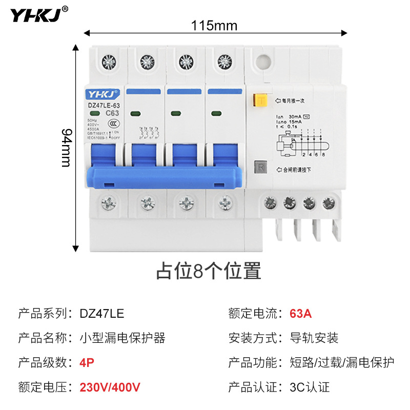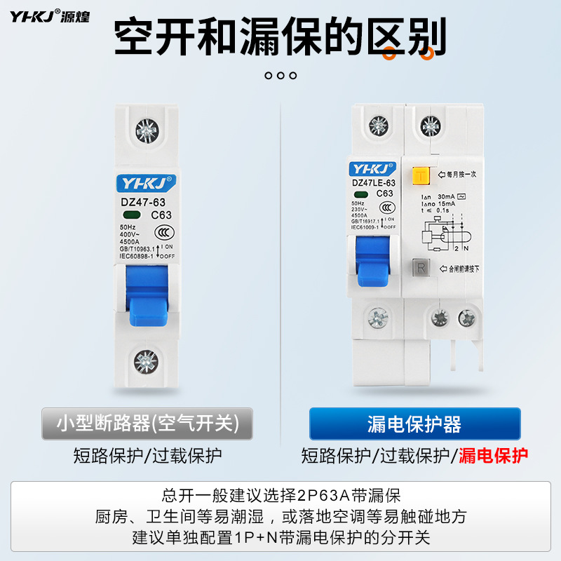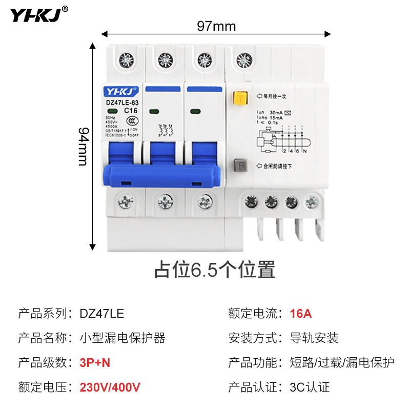Переключатель утечки DZ47LE 63A воздушный переключатель 3p протектор утечки 16A 25A 32A63A технология Yuanhuang