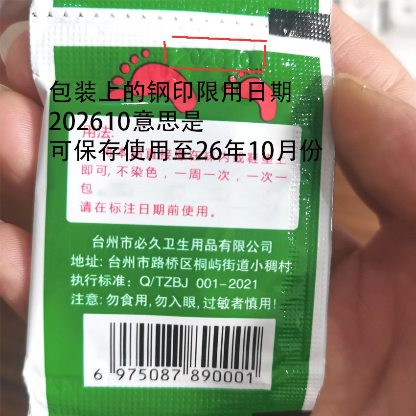 脚臭粉使用方法:最方便实用的就是撕开撒鞋子里面,抖均匀就可以直接穿了,一双鞋一次一包,一个星期用一次。这个也可以泡鞋袜使用,一次3袋,泡15分钟左右晾干即可,但是泡的效果没有撒的效果好,,这个我们销售十几年的商品,自己都是用过的,然后我家小孩上小学春秋季脚汗多也撒鞋子里用过的,所以没有什么副作用的。必久商标注册的是五类商标
