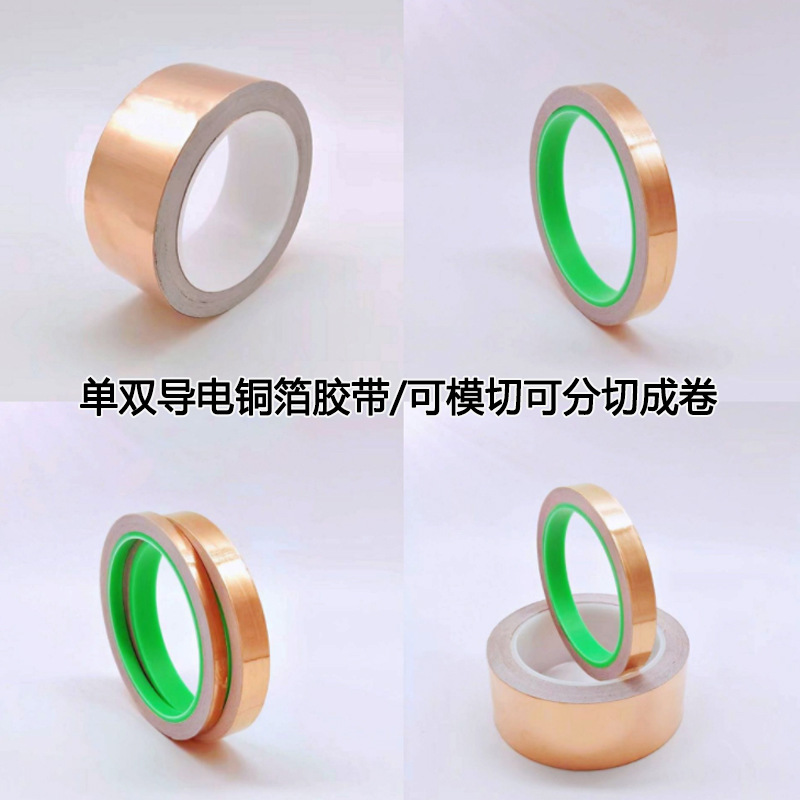 Электромагнитное экранирование, защита от помех, одинарная направляющая, двойная направляющая, лента из медной фольги, самоклеящаяся лента для рассеивания тепла, 0,05 мм, устойчивая к высоким температурам