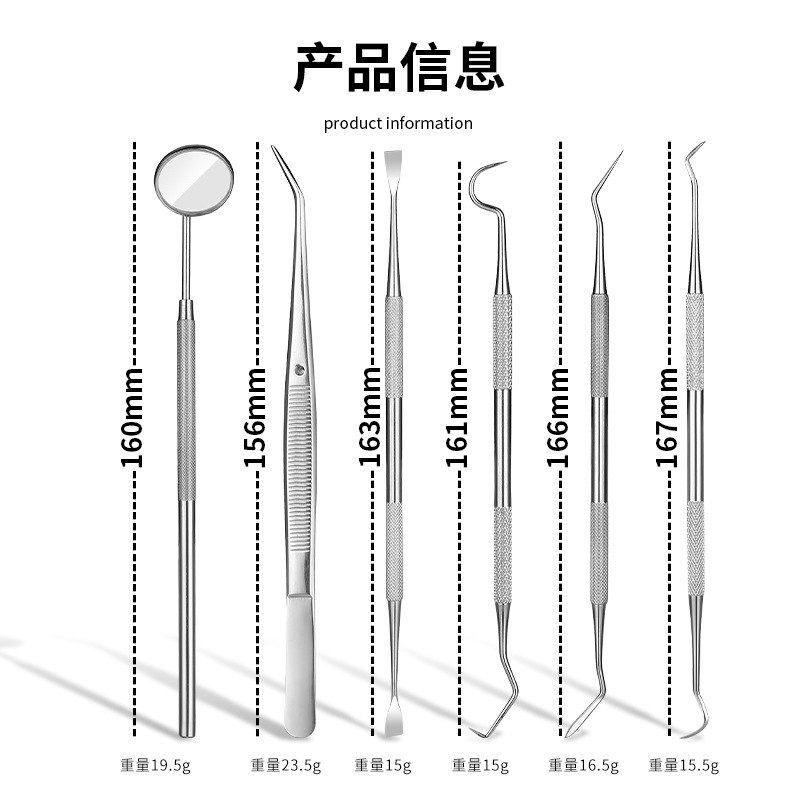 ПВХ набор из шести частей [Зеркало. Зонд. Щипцы. Серп.; ПВХ набор из пяти частей [зеркало. зонд. пинцет. серп.; ПВХ набор из четырех частей [зеркало. зонд. пинцет.; Набор из четырех частей из ПВХ (оскопический зонд серповидного типа); Набор из четырех частей из ПВХ (зажим, зонд, серп, мотыга); ПВХ набор из трех частей (серп. мотыга. зонд); ПВХ набор из трех частей (зеркало, пинцет, зонд); 304 зубной чиститель; 304 зонд [карта]; 304 серповидная чистка зубов [карта]; Зонд; Зеркало для рта; U-образный скребок для языка - в упаковке [1000 штук в коробке]; Большой ноготь-кикер серебряный двойной головкой-16,5см; Серповидный аппарат для чистки зубов; Устройство для чистки зубов; Пинцет; Треугольная игла; Универсальный тип-заполнитель 02; Распространённый тип-заполнитель 04; Профессиональная полировальная машина 06; Профессиональный нож для восковой пасты типа 07; Профессиональный нож из смолы типа 09; Универсальный нож для воскового типа 10