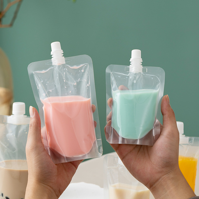 В наличии Прозрачный одноразовый всасывающий мешок для рта Чай с молоком Йогурт Соевое молоко Китайская медицина Жидкая субупаковка Упаковочная сумка Самонесущая сумка для напитков