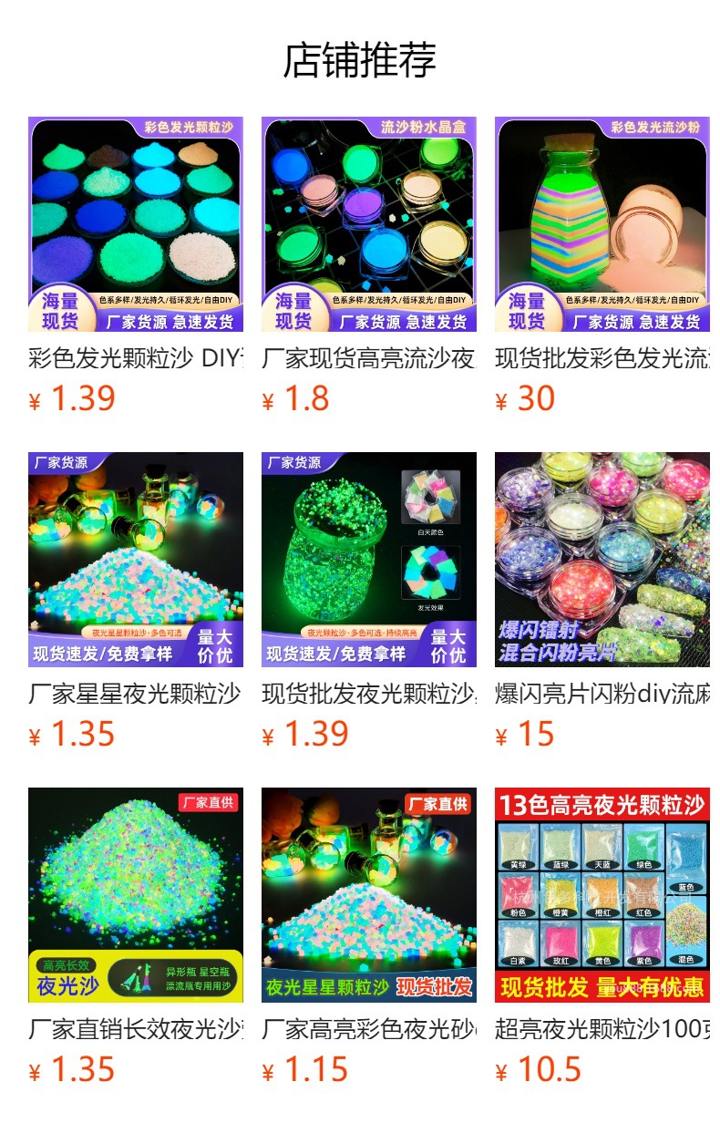 Светящийся порошок, светящийся песок, цветные флуоресцентные частицы, оптовые поставки светящихся материалов на основе смолы, светящийся песок для внешней торговли, длительный срок службы.