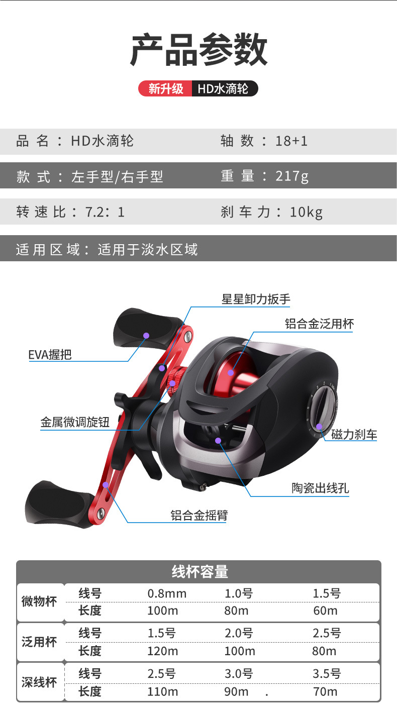 Hao Dunluya Drop Wheel Оптовая продажа противовзрывных катушек для лески на большие расстояния Рыболовная катушка Black Fish Wheel Micro Wheel HD