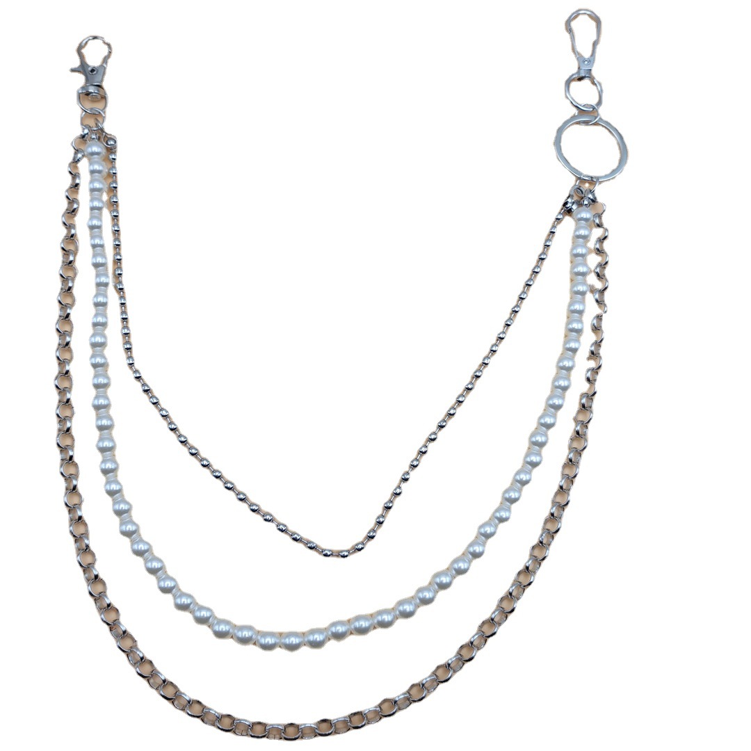 Европа и США трансграничные ювелирные изделия Хип-хоп мода прохладная металлическая цепочка брюки цепи Простой Джокер имитация жемчуга талии цепи женские производители оптом