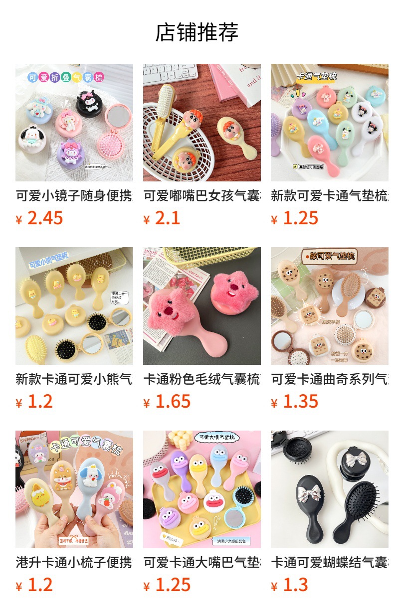 Гребень с воздушной подушкой, смешанных цветов, без выбора цвета; Светло-розовая расческа с воздушной подушкой; Розовая расческа с воздушной подушкой; Гребень с воздушной подушкой светло-голубого цвета; Фиолетовая расческа с воздушной подушкой; Зеленая воздушная массажная расческа; синяя расческа с воздушной подушкой; Светло-желтая расческа с воздушной подушкой; Жёлтая расчёска с воздушной подушкой; Светло-коричневая расческа с воздушной подушкой; Светло-коричневая расческа с воздушной подушкой контрастного цвета; Коричневая расческа с воздушной подушкой; Коричневая контрастная расческа с воздушной подушкой; Коричневая расческа с воздушной подушкой; Коричневая расческа с воздушной подушкой контрастного цвета; Светло-фиолетовая расческа с воздушной подушкой контрастного цвета; Розово-белая расческа с воздушной подушкой контрастного цвета; Черно-белая расческа с воздушной подушкой контрастного цвета; Розовая и черная расческа с воздушной подушкой контрастного цвета; Черная расческа с воздушной подушкой