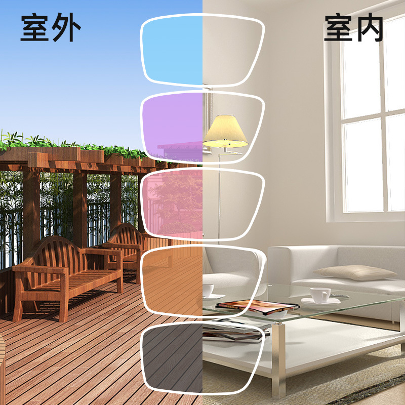 1.61 Изменение цвета линзы 1.56 Изменение базы 1.67 Серая линза близорукость MR анти-синий свет пленка становится серым чаем порошок фиолетовый синий