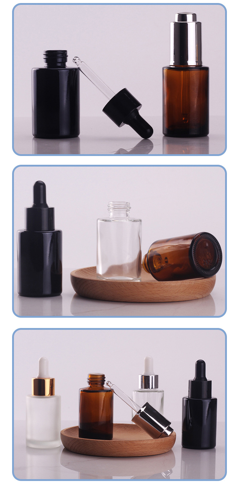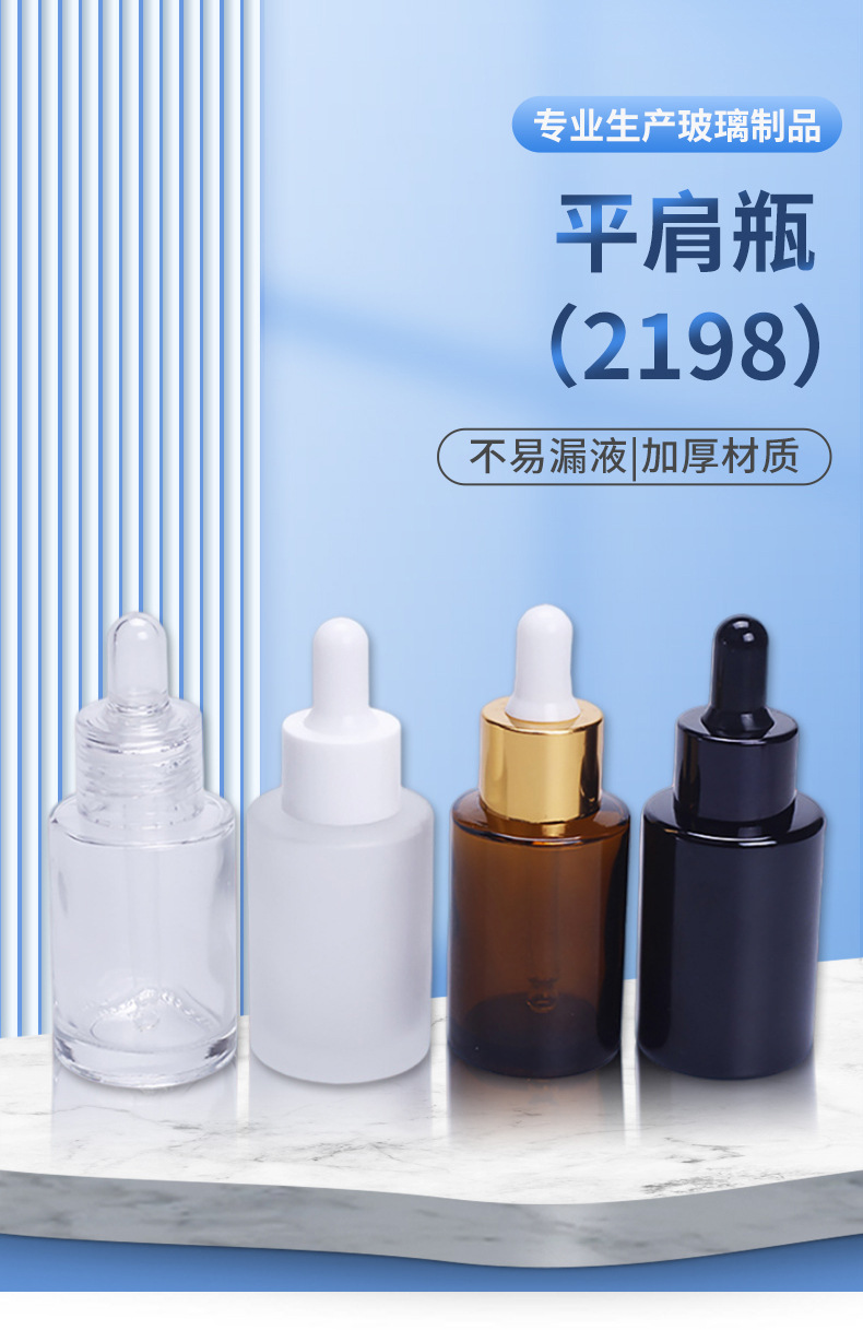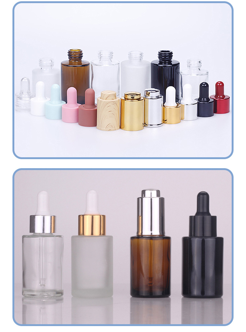 Оптовая оптовая прозрачная бутылка-капельница 30 мл вертикальная стеклянная бутылка 30 мл коричневый плоский плечо черный светозащищенная бутылка масла