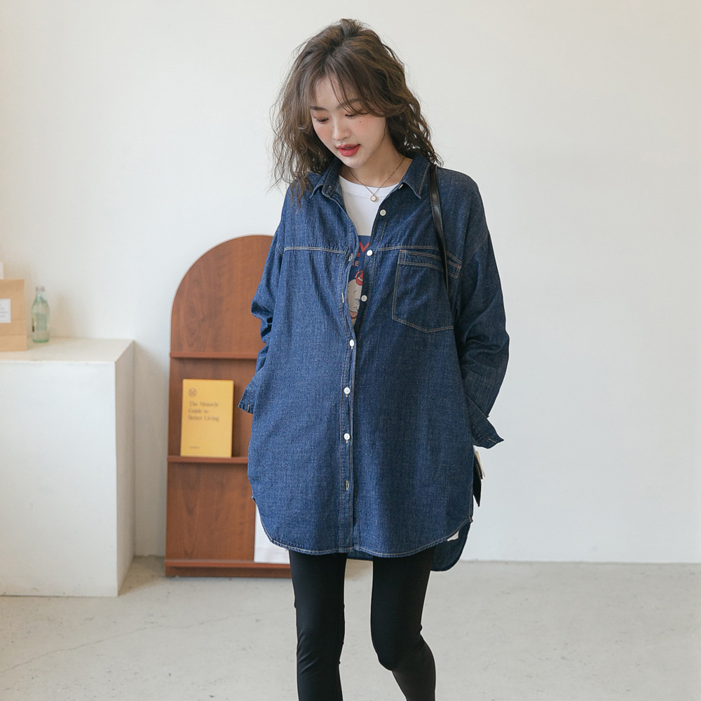 Новая весенняя одежда для беременных модная онлайн красная джинсовая рубашка с длинным рукавом в западном стиле Ранняя весна модное пальто для мамы с длинным рукавом