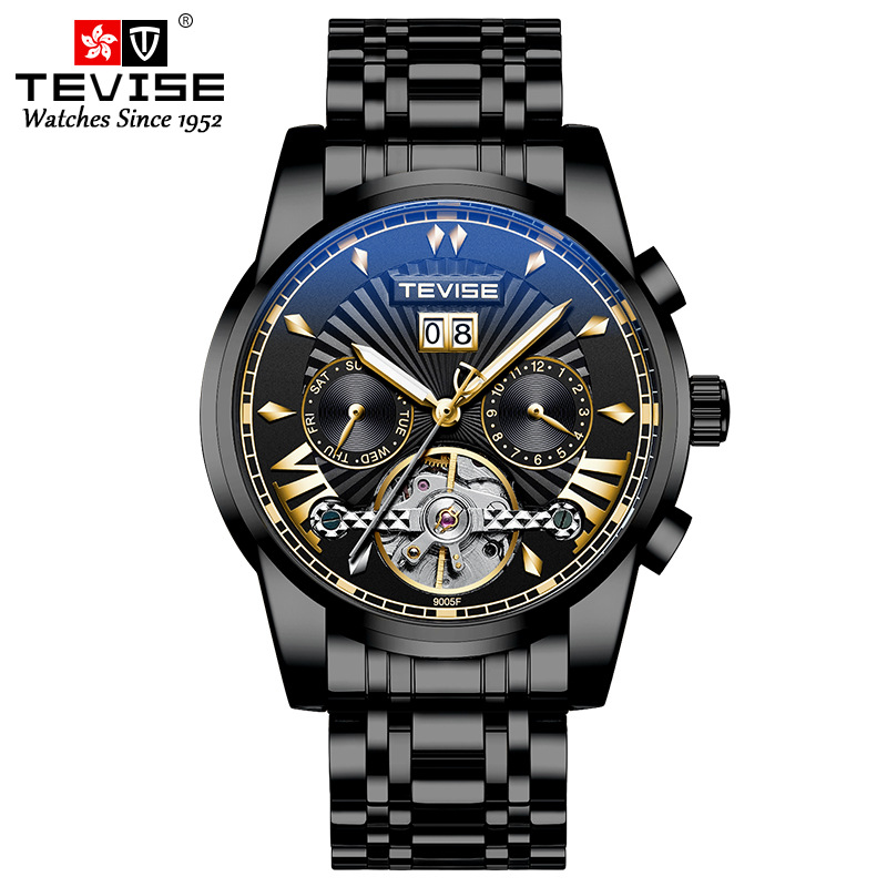 Швейцарские модные деловые часы TEVISE, мужские механические часы, водонепроницаемые часы со стальным ремешком и турбийоном, многофункциональные мужские часы