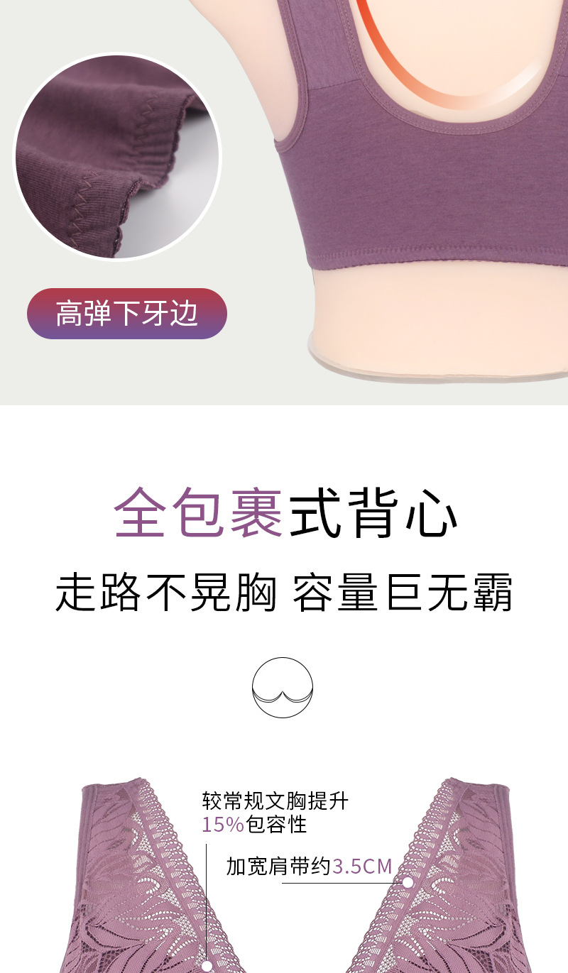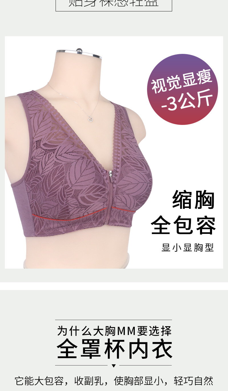 Мягкий хлопковый бюстгальтер с передней молнией для женщин среднего и пожилого возраста, без косточек, в стиле топа, с кружевом, новый, большого размера.