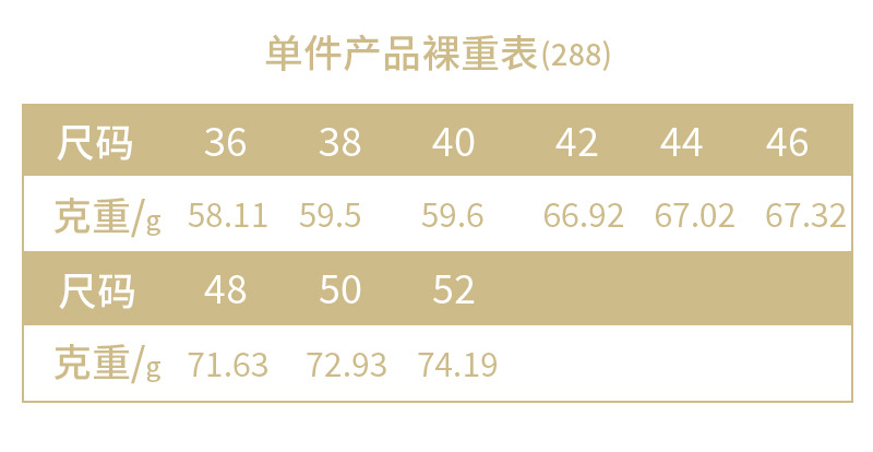 36/80; 38/85; 40/90; 42/95; 44/100; 46/105; 48/110; 50/115; 52/120
